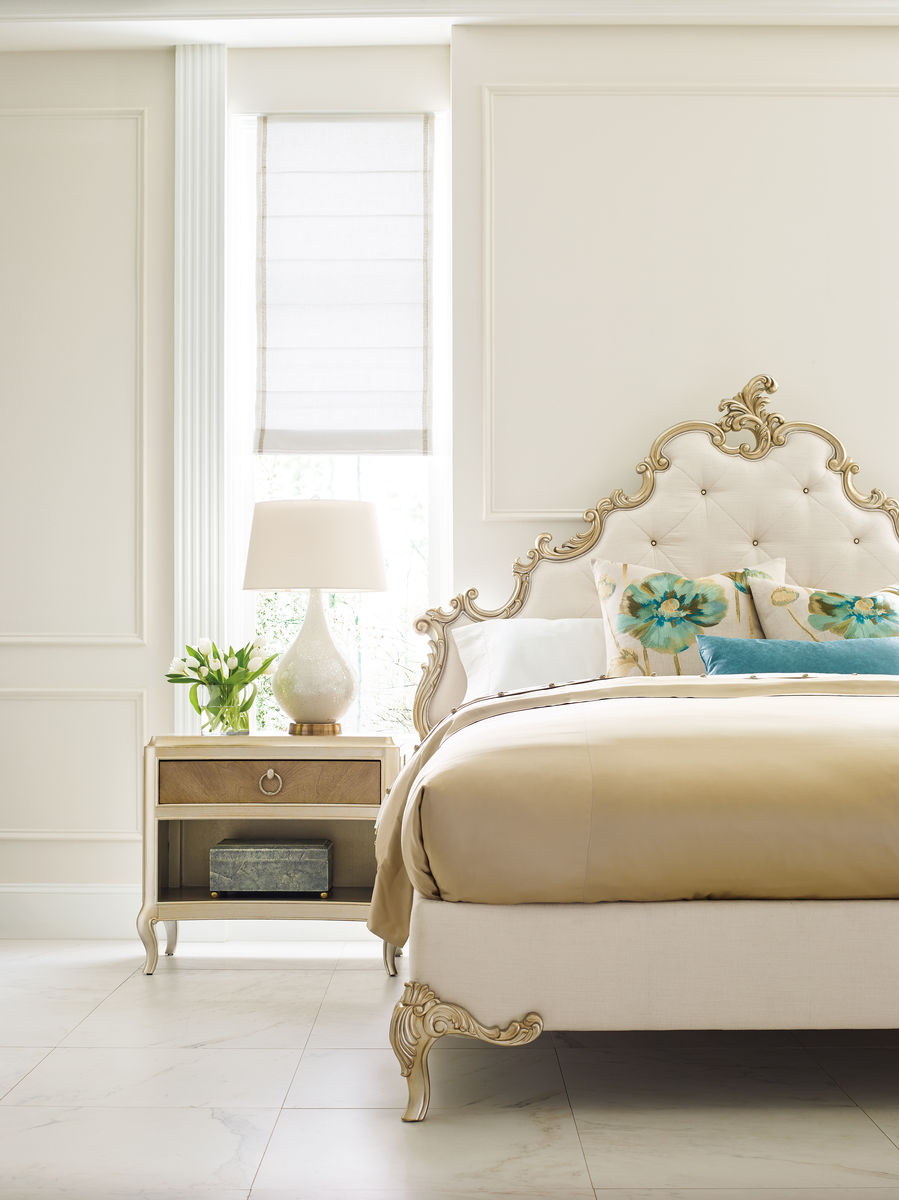 Представьте себе кровать в стиле европейского замка, и вы перенесетесь в мир драматической красоты, которую предлагает эта уникальная панельная кровать. Вдохновленная винтажным дизайном в стиле рококо, она восхищает замысловатой резьбой, которая призывает в память эпоху, и выделяется окрашенной металлической отделкой цвета Effervescent.