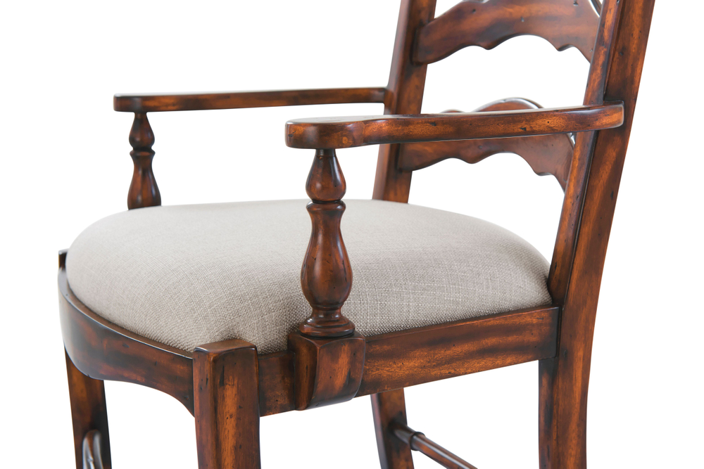Изготовленное из состаренного дерева, это кресло олицетворяет элегантность и изысканность. Его арочная змеевидная спинка добавляет изысканности и утонченности, создавая визуальный акцент в вашем интерьере. Обитое сиденье обеспечивает максимальный комфорт и поддержку при сидении.