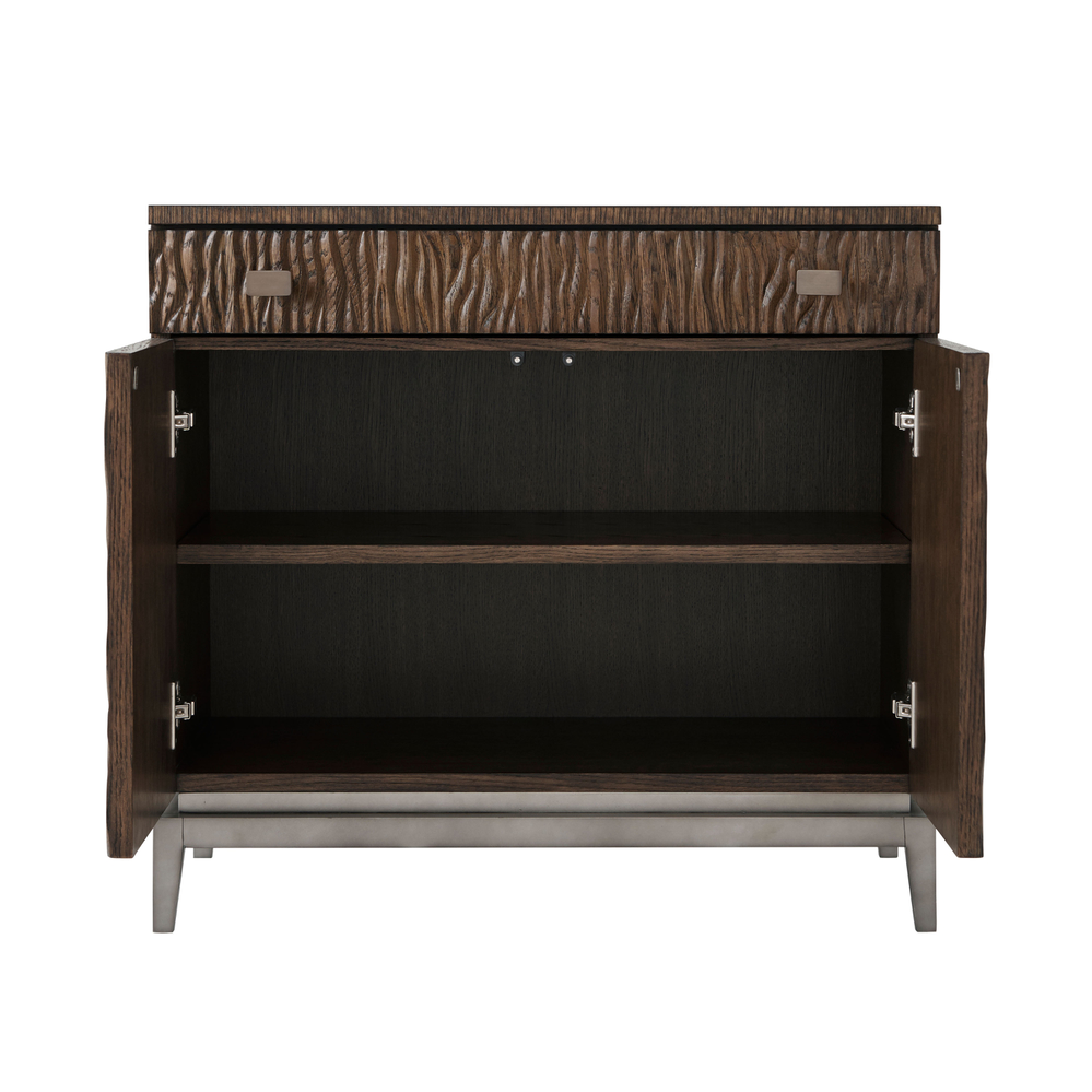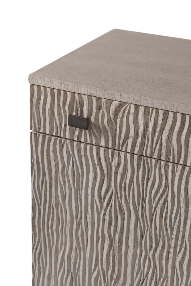 Тумба оснащена выдвижным ящиком Frieze, который предоставляет удобное место для хранения различных предметов. Две дубовые дверцы с рифленой резьбой придают этой тумбе утонченный и в то же время сдержанный вид.