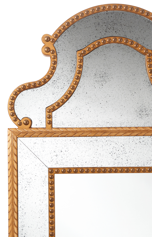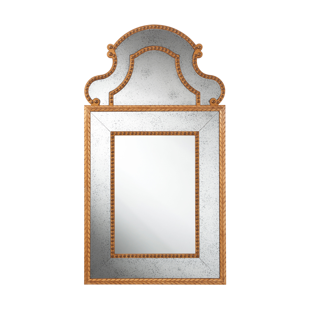 Philippe — это современное воплощение классического настенного зеркала в стиле Регентства. Центральное антикварное зеркало обрамлено резной рамой с элегантными шевронными створками и изысканным внутренним обрамлением. Завершает образ великолепный змеиный гребень, который придает зеркалу роскошный и неповторимый акцент.