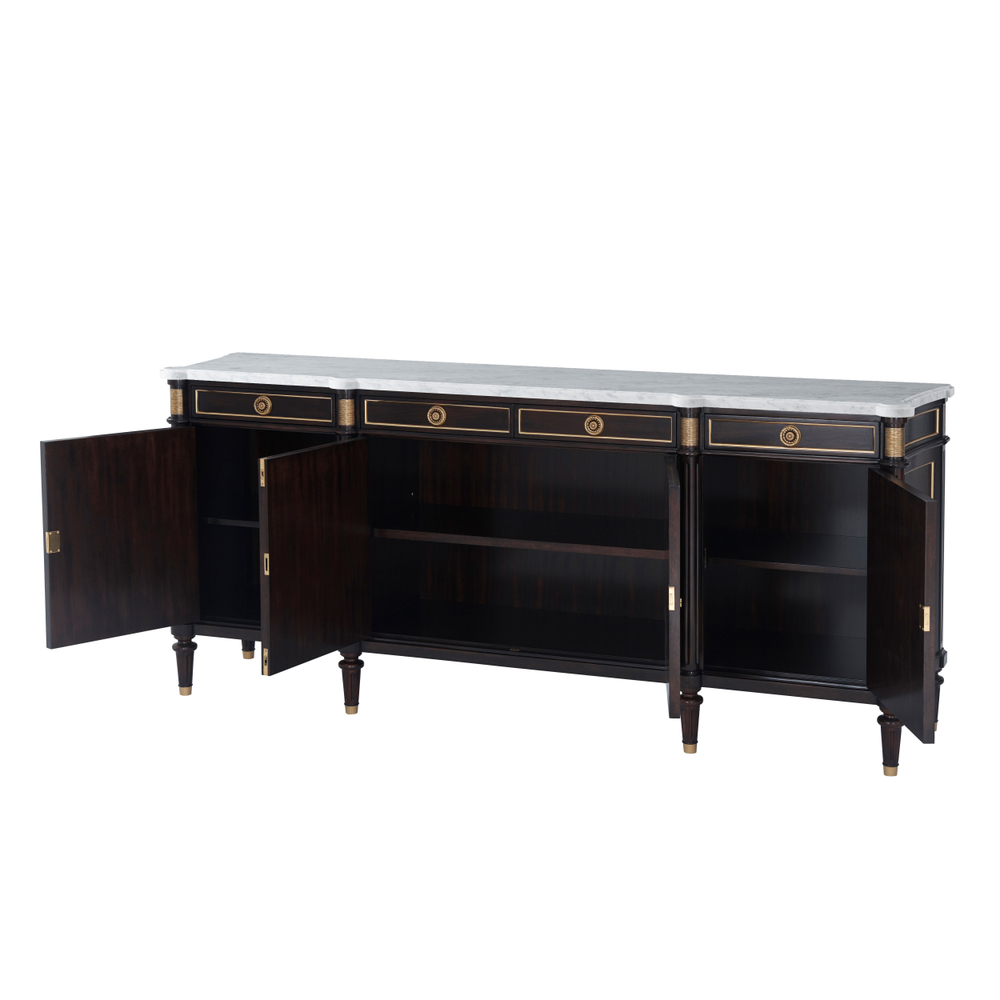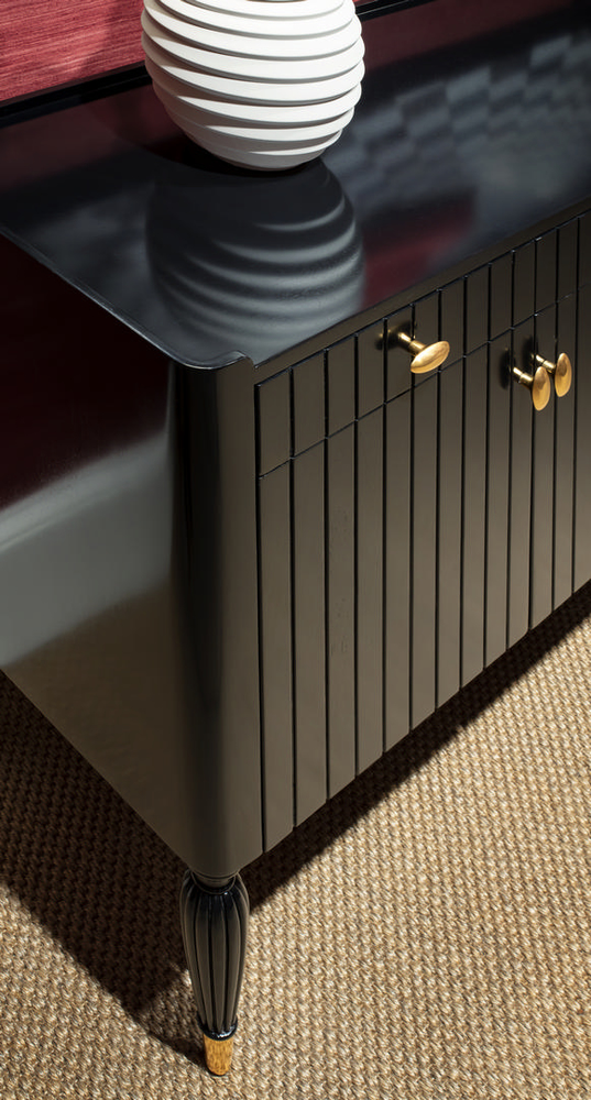 Комод Hamilton, вдохновленный французским антикварным стилем, привносит нотку элегантности в интерьер. Столешница выполнена из мрамора Bianco Carrara, а скульптурные углы и рифленые колонны с литыми капителями добавляют изысканности. Фасады дверей и ящиков украшены литыми латунными ручками и молдингами, которые гармонично сочетаются с рифлеными сужающимися ножками и ручной росписью цвета латунь металлик. Изготовленный из массива красного дерева и шпона короны, этот комод становится идеальным акцентом для классического или современного интерьера.