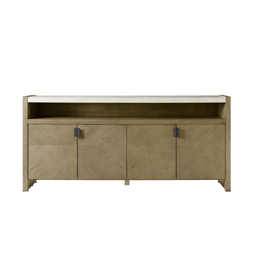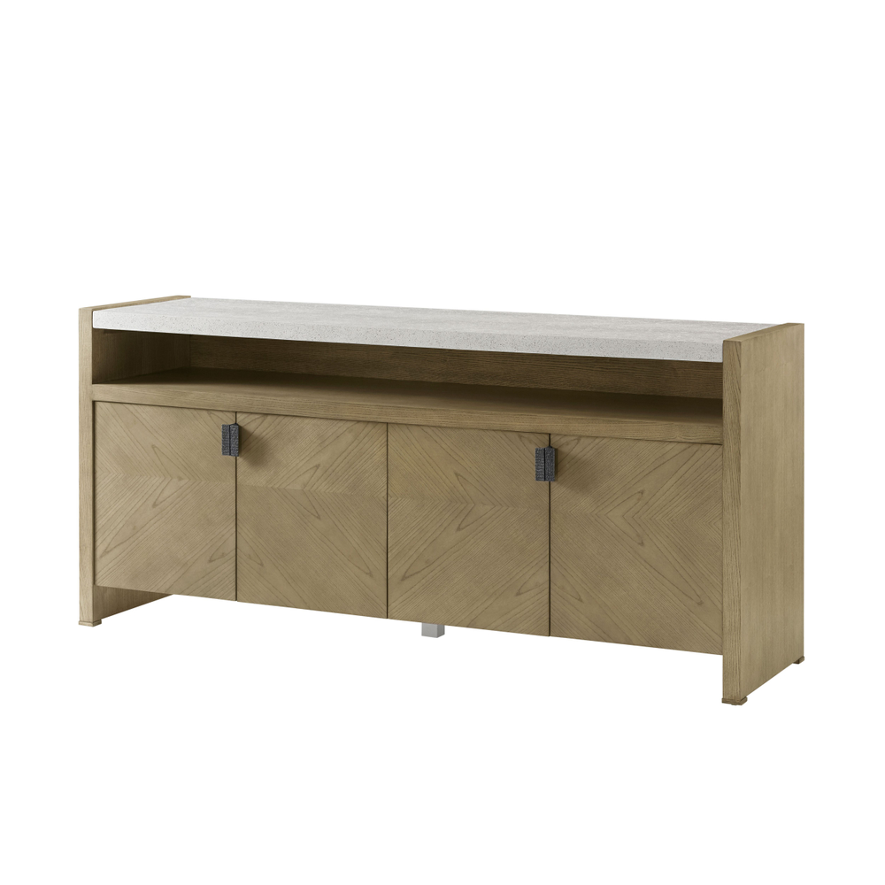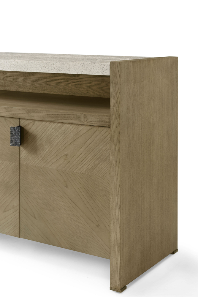 Буфет Catalina Media — это изысканный четырехдверный шкаф для мультимедиа, выполненный из ясеня с оригинальным рисунком текстуры и предлагаемый в цветах Dune или Earth. Шкаф украшен металлическими тягами цвета Ember и элегантным верхом с отделкой Mineral. Внутри находятся регулируемые полки, что делает этот буфет не только стильным, но и функциональным решением для вашего пространства.