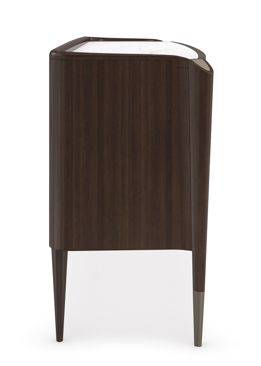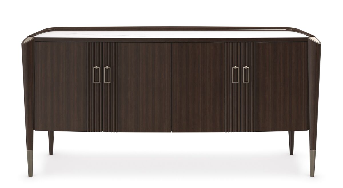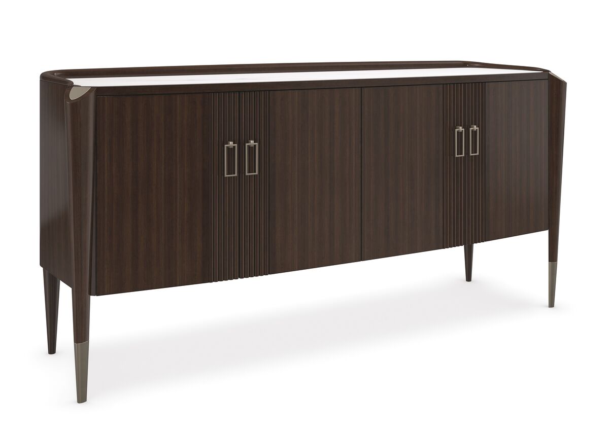 Классический элемент интерьера столовой, буфет Oxford, предлагает гибкие возможности для хранения и выглядит великолепно роскошным. Богатая отделка Stallion прекрасно подчеркивает центральные панели с язычками и изящные закругленные перила галереи, создавая контраст с кремовой столешницей из камня Kararagin, которая обеспечивает прочную поверхность для сервировки. Золотые венки, похожие на мраморные узоры, придают ему древнюю атмосферу, дополняемую пиритовыми окрасками обойм и медальонами с изображениями, нанесенными шелкографией, на высоких конических ножках.