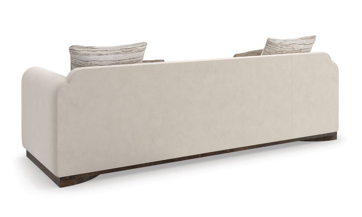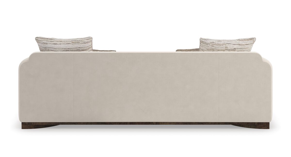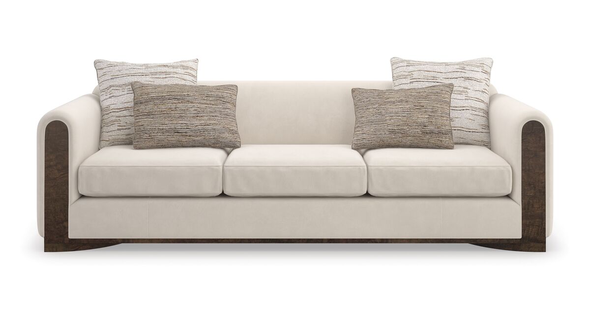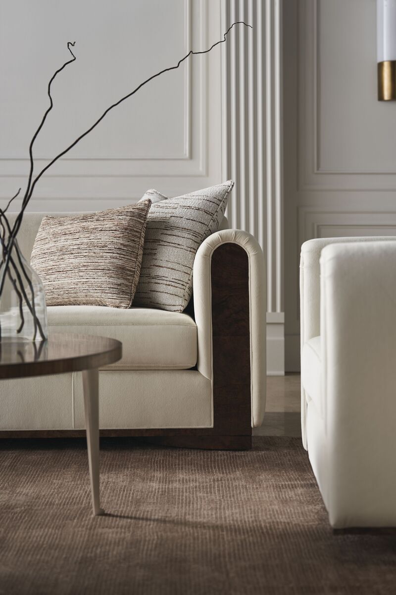 Диван Dimitri представляет собой просторное и уютное место для отдыха, объединяя в себе изысканные текстуры и материалы. Тщательно сшитый из искусственного бархата цвета яичной скорлупы и ангоры, Dimitri создает гармоничное сочетание различных поверхностей. Вставка из ореха маппы Galway подчеркивает изящные, мягко изогнутые подлокотники, спускающиеся к полукруглому цоколю. Шелковые прямоугольные и почкообразные подушки добавляют дивану глубину и многослойность, обогащая модный образ.