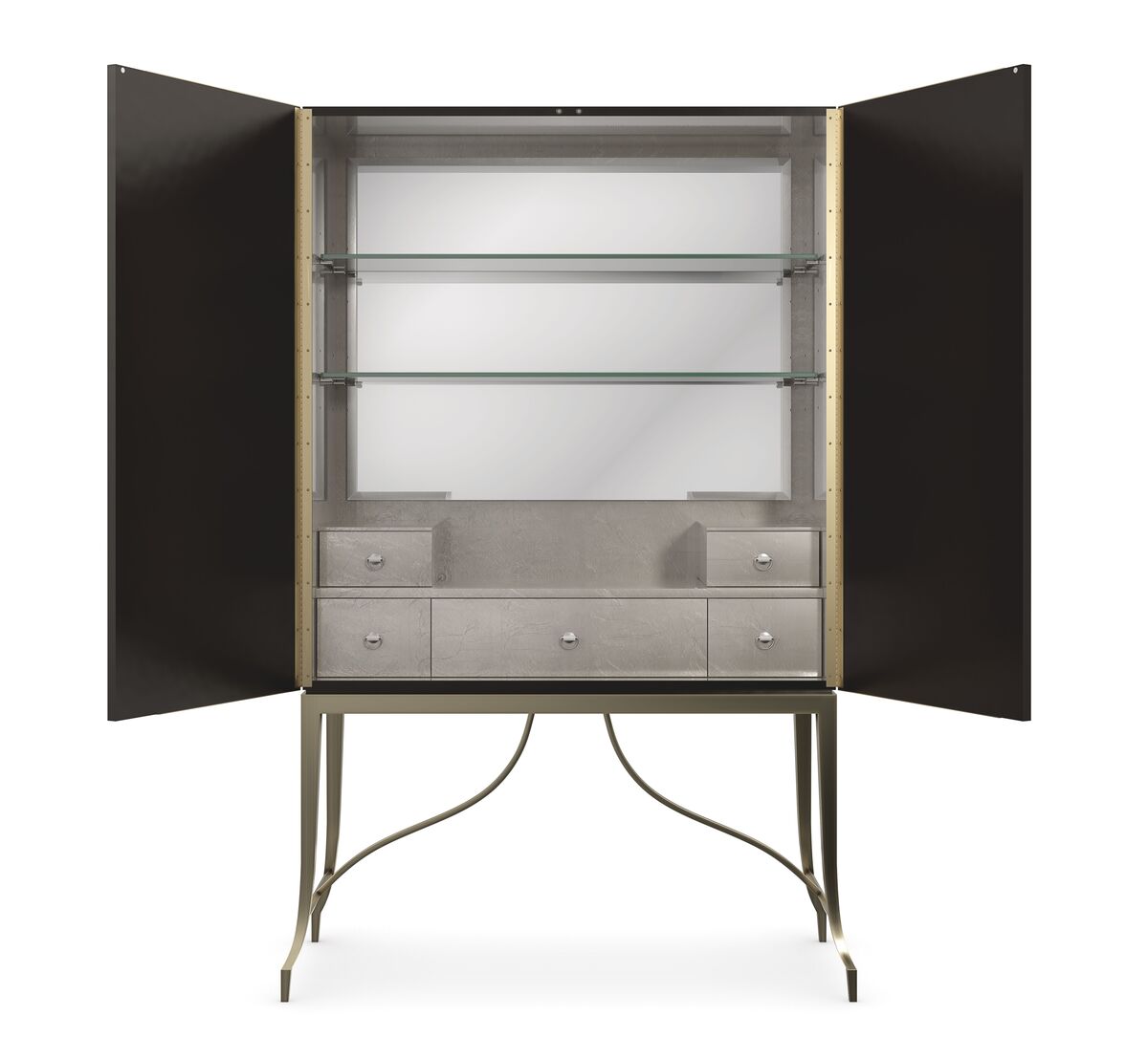 Буфет Uptown, созданный с особым вниманием к деталям, ремеслу и практичности, напоминает ритм городского транспорта. Его негабаритные дверцы, окрашенные в лаковый цвет Chocolate Truffle, украшены тактильным сочетанием искусственной шагрени и смолы Café Latte с ручной печатью и накладкой Brushed Gold. Внутреннее пространство, освещенное зеркальной отделкой, обеспечивает множество выдвижных ящиков, предоставляя достаточно места для хранения необходимых вещей.