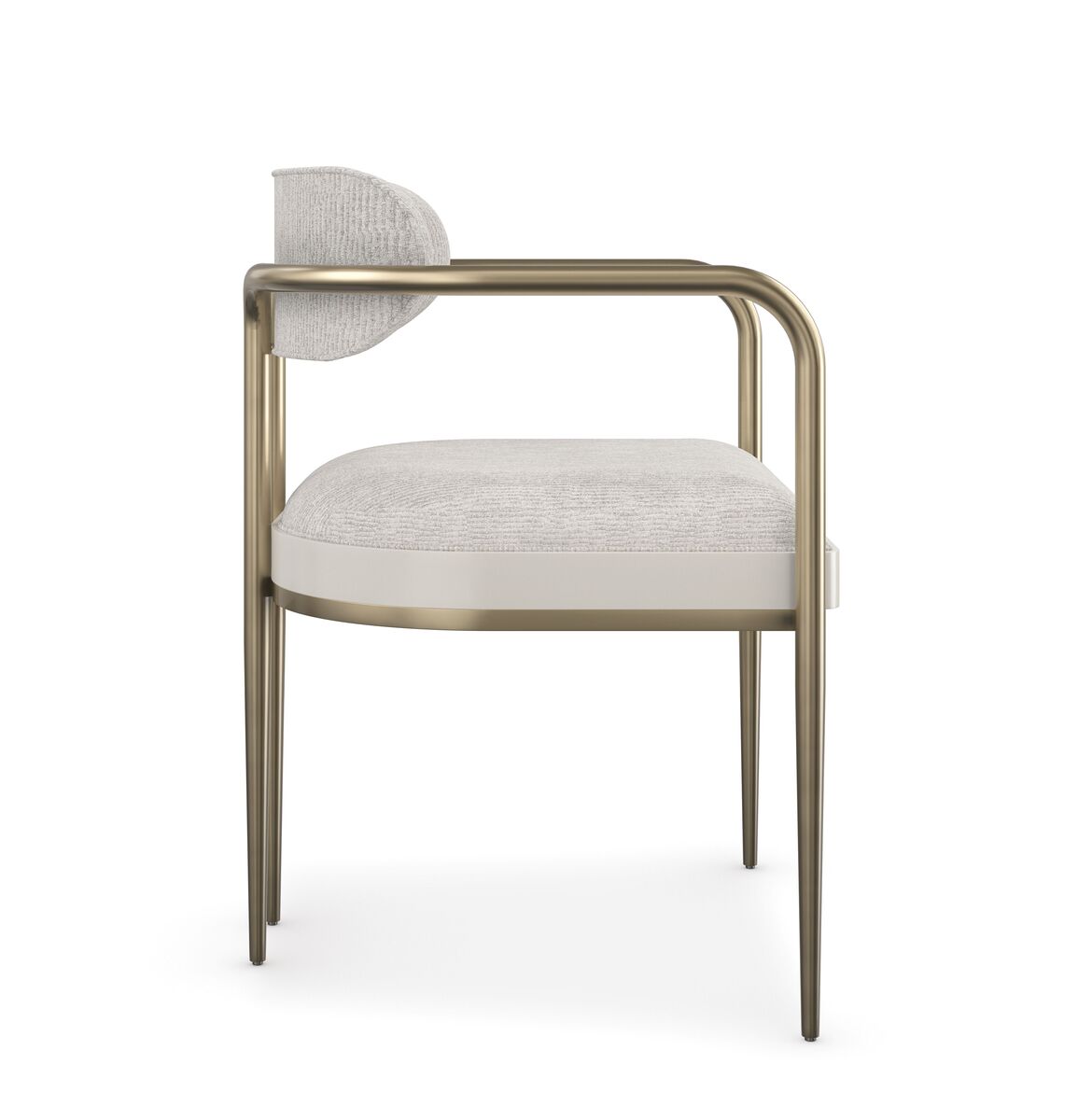 Обеденный стул Emphasis представляет собой воплощение изысканности и элегантности, вдохновленное легкостью и современным дизайном. Утонченные линии и грациозная форма придают этому стулу характер. Изогнутые металлические ручки в оттенке Lucent Bronze, плавно изгибающаяся спинка и деревянное сиденье в нюансе Almost White создают исключительно изящный облик, который станет ярким акцентом в интерьере.