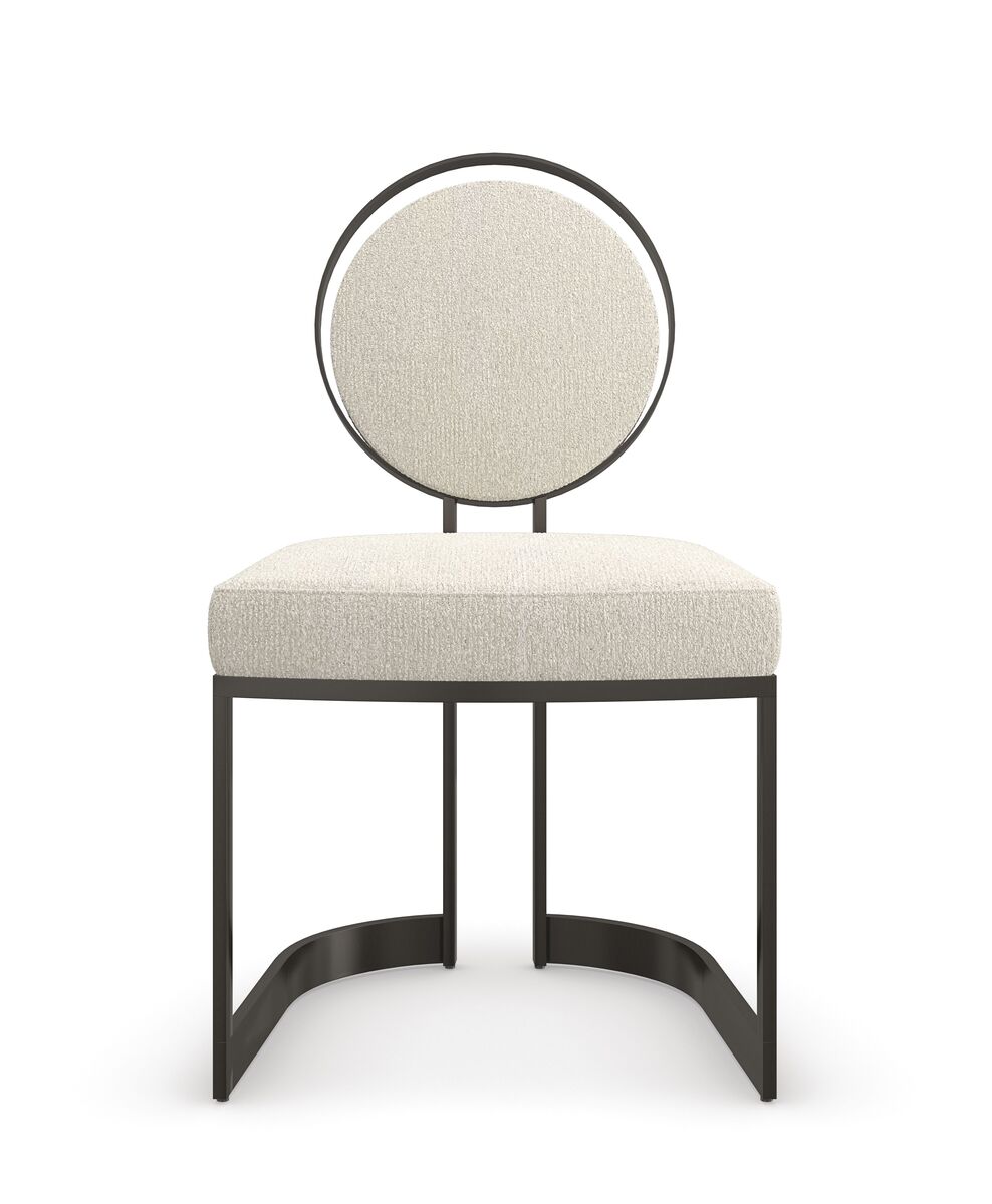 Добавьте изысканности в вашу столовую с элегантным стулом La Lune. Его парящая спинка, заключённая в металлический круг, напоминает луну в разных фазах, создавая захватывающий и интригующий дизайн. Мягкая обивка цвета слоновой кости обеспечивает комфорт, а контрастная отделка в оттенке шоколадной бронзы подчёркивает роскошь и утончённость этой модели.