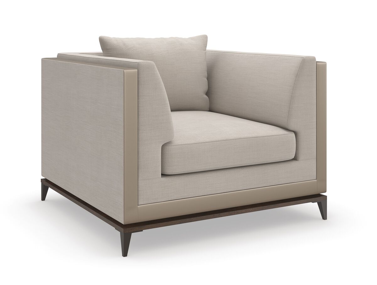 Кресло из коллекции Archipelago сочетает в себе расслабленный комфорт и изысканную эстетику. Обитое нейтральной саржевой тканью с акцентами из искусственной кожи, оно имеет утонченный силуэт и стоит на деревянном основании в оттенке бурбонской глазури с металлическими ножками в отделке Deep Bronze. Коллекция также включает в себя ложе с правым и левым подлокотниками, а также кресло без подлокотников.