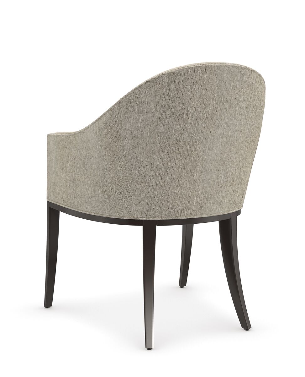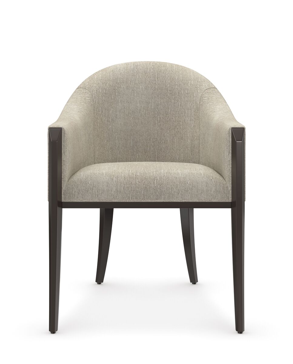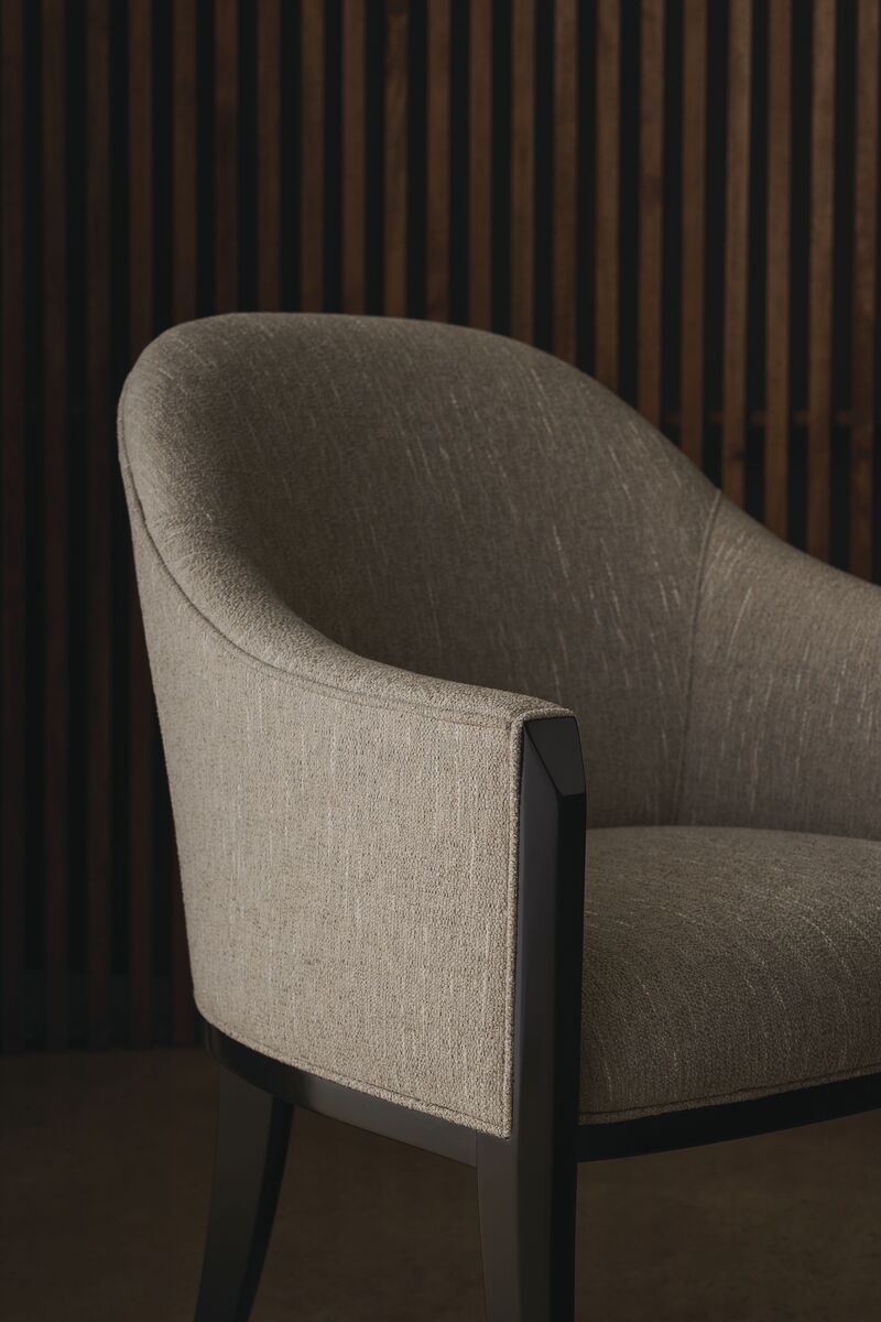 Теплый и приглушенный, с серебристыми нотками, обеденный стул с подлокотником Next Cource приглашает гостей насладиться обедом в уютной атмосфере. Изысканная бочкообразная спинка, удобно изогнутая, обеспечивает комфортную поддержку, а плавные, изогнутые подлокотники добавляют шарма. Они дополнены гранеными стойками, создающими богатый контраст с отделкой Dark Chocolate. Классический силуэт стула прекрасно сочетается с современными интерьерами столовых, придавая непринужденную элегантность.