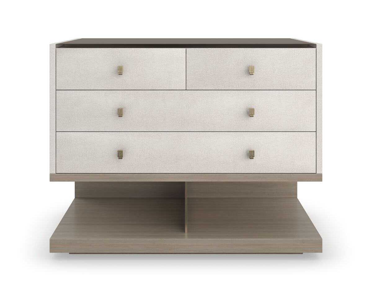 Утонченная тумбочка Odyssey, с вдумчивым использованием пространства и изысканных материалов, названа в честь эпической саги о герое Одиссее, написанной Гомером. Она создана в комплекте с нашей кроватью Anthology, ее консольное основание сочетается с панельными крыльями изголовья, создавая эффект парения. Стеклянная столешница в оттенке дымчатой бронзы и тактильная фурнитура из металла с матовым золотистым оттенком добавляют дополнительную изысканность. Четыре выдвижных ящика с мягким механизмом закрывания и открытым хранилищем, два из которых оснащены отверстиями для проводов, обеспечивают удобное и незаметную зарядку устройств.