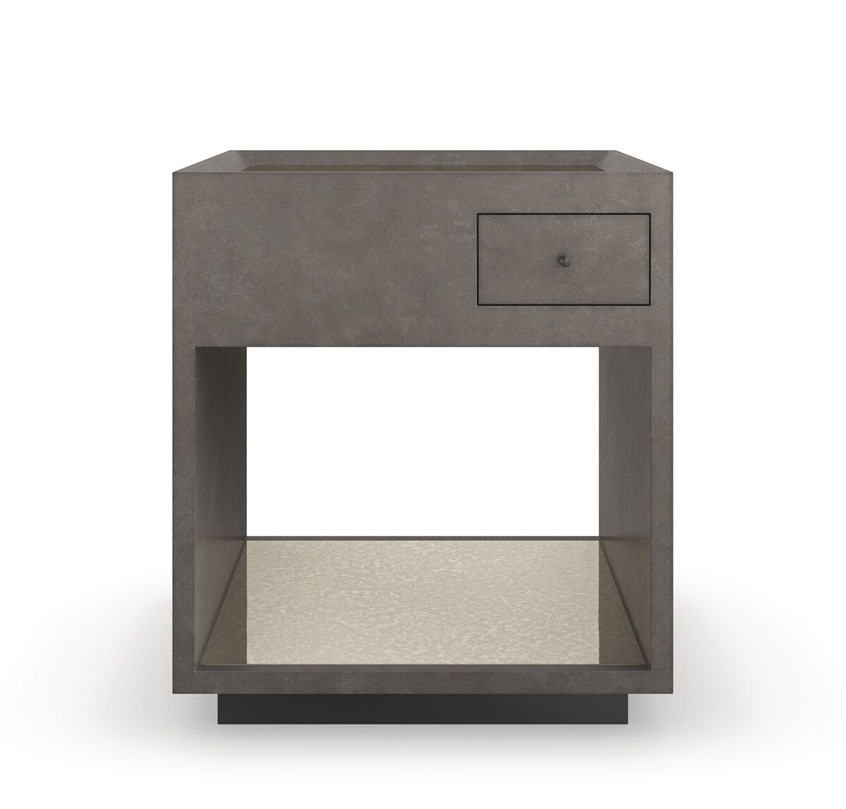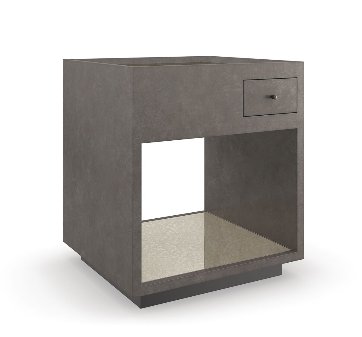 Утонченное сочетание материалов и отделок делает боковой столик Dark Matter особенным. Его простая квадратная форма предоставляет открытое пространство для демонстрации и хранения. Зеркальная столешница и полка создают впечатление глубины и теплого отражения, а отделка добавляет тактильности и дополнительного мерцания. Асимметричный выдвижной ящик с утопленными в стену защелками предлагает удобное место для хранения и минимизации беспорядка.