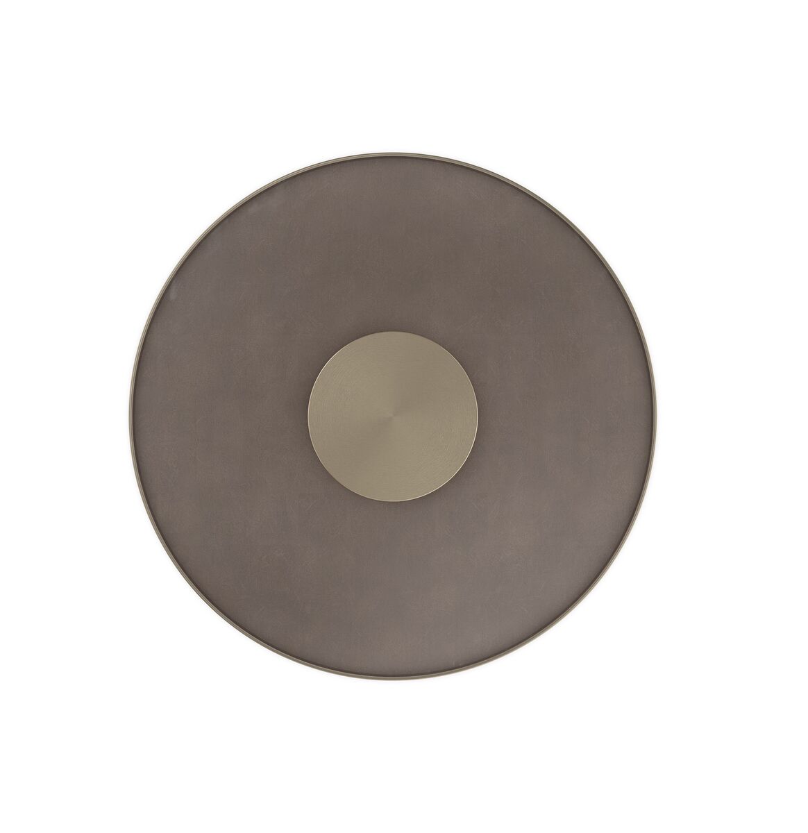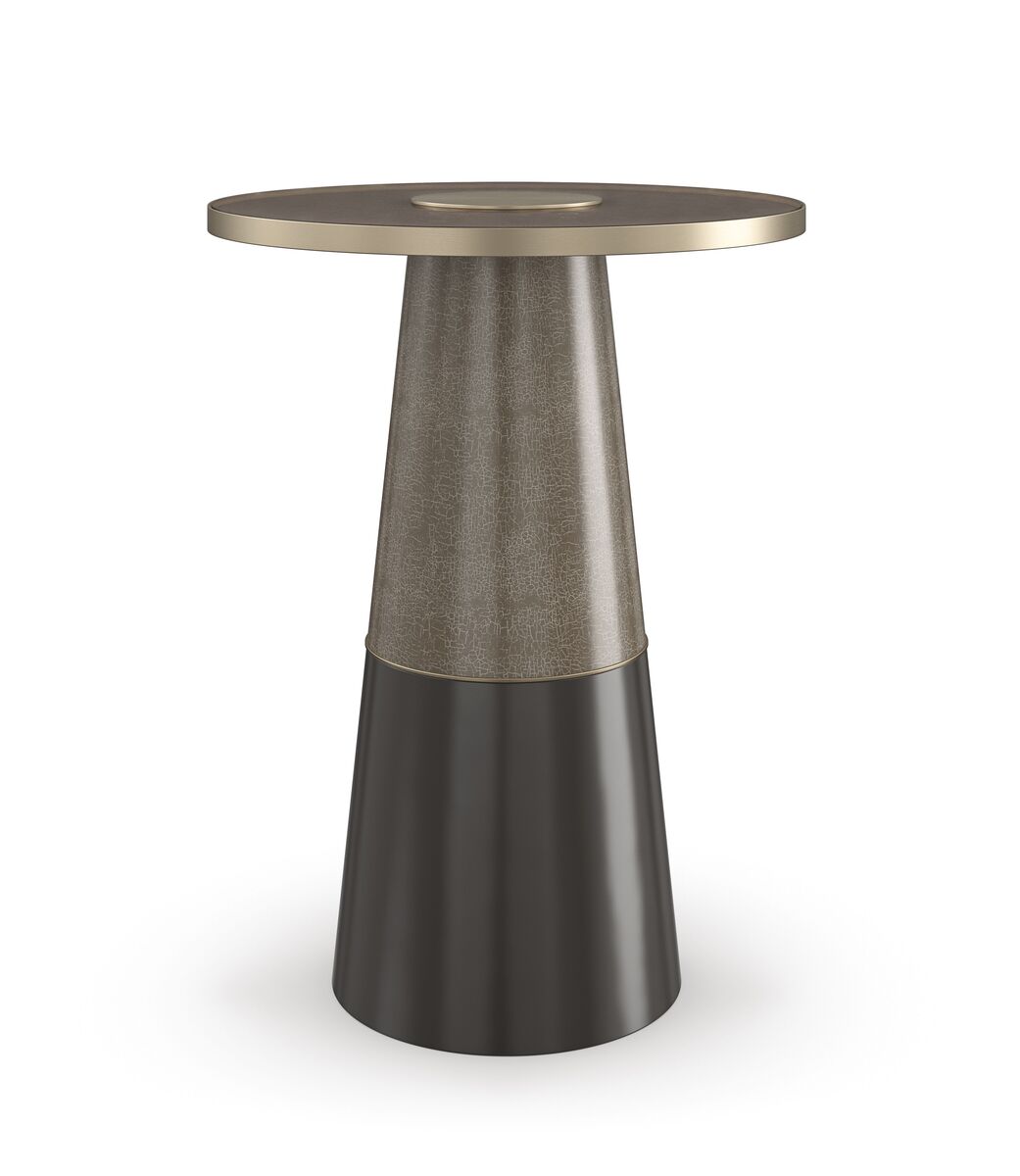 Этот универсальный столик обладает изящным силуэтом и видом сверху вниз, напоминающим диафрагму фотоаппарата. Кракелюрная отделка Forest Craze придает ему глубину и красоту, которые дополняются вставкой из дымчатого бронзового стекла с металлической полосой и центральным диском цвета матового золота. Разместите его между двумя стульями, чтобы создать композицию и уникальный фокус.