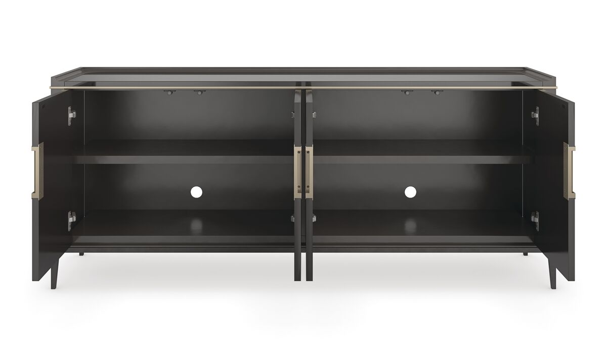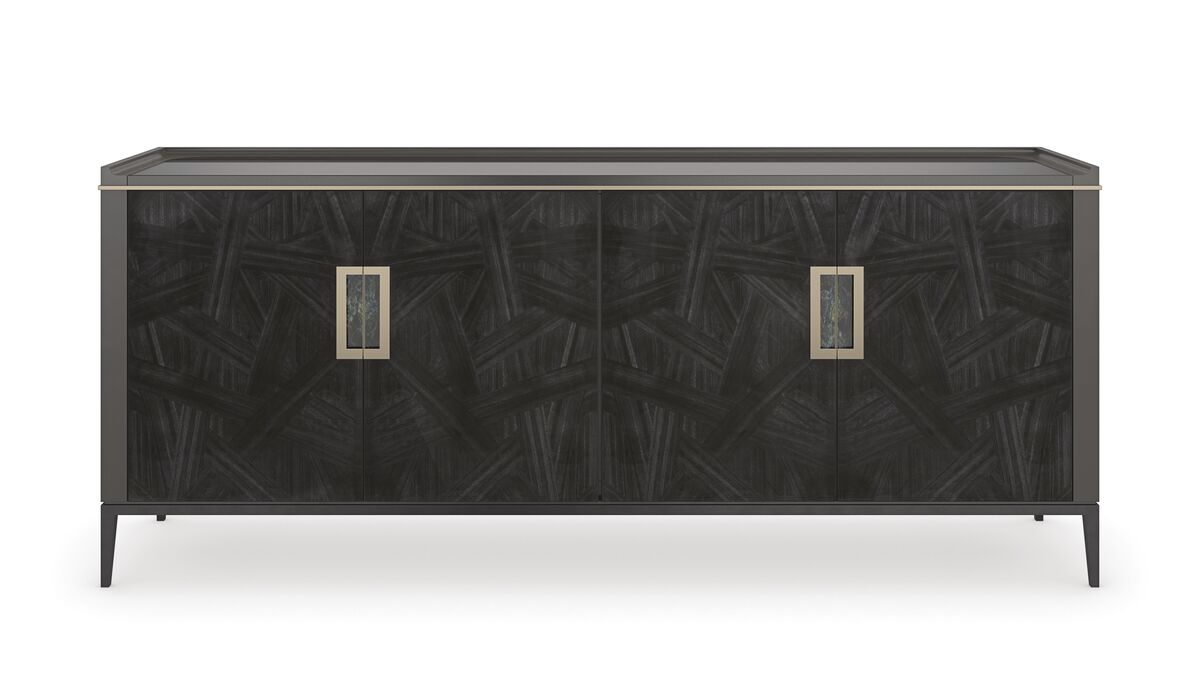 Мастерски созданная и визуально привлекательная, эта тумба под ТВ придает вашему интерьеру глубину и изысканность за счет инновационного сочетания текстур и материалов. Фасады дверей поражают своей утонченностью и вдохновлены искусством, выработанным временем. Они включают в себя сложное соединение фактур, чтобы создать абстрактные или геометрические узоры. Отделка Cosmos Black придает консолиблагородный вид, а столешница из камня Shanxi Black украшена металлическими бусинами цвета матового золота. Вставные дверные ручки из лабрадорита добавляют роскошный завершающий штрих. Тумба также предлагает обширные возможности для хранения с системой управления проводами.