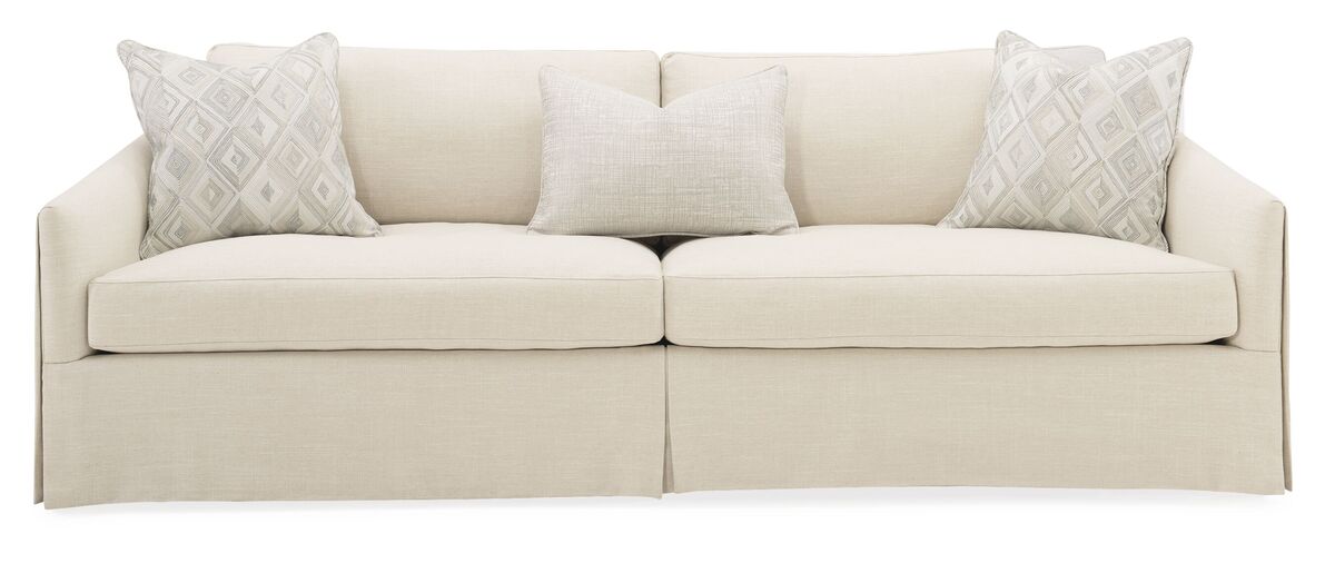 "Dress to Impress" - диван A Casual Affair иллюстрирует, как мода вдохновляет домашний дизайн. Получив вдохновение на последних модных показах Недели моды в Нью-Йорке, этот привлекательный диван сочетает в себе чистые линии с классическим потоком драпирующегося материала и многослойными складками. Его гладкие покатые ручки создают эффект юбки-платья, которая изящно струится с верхней части ручек спереди и сзади. Роскошные мягкие акцентные подушки в нейтральных тонах добавляют тон в тон. Расслабленный, обновленный и всегда классический, этот диван служит идеальной основой для изысканного дизайна.