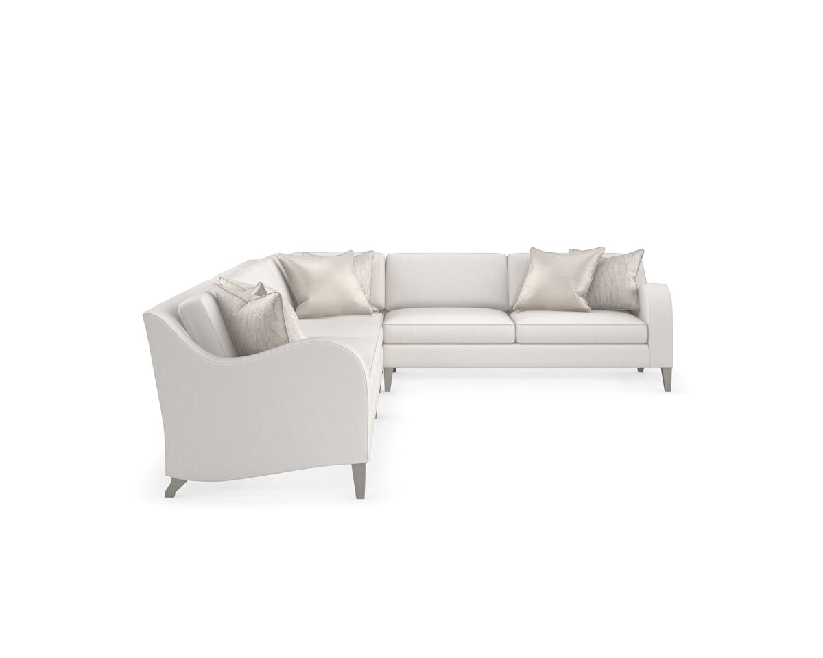 Подарите своей гостиной утонченность и уют с помощью этого элегантного секционного дивана, который гармонично сочетает классику и современность. Обивка из кремового плетения с лёгким мерцанием создаёт изысканную текстуру, дополняя интерьер теплотой и нежностью.