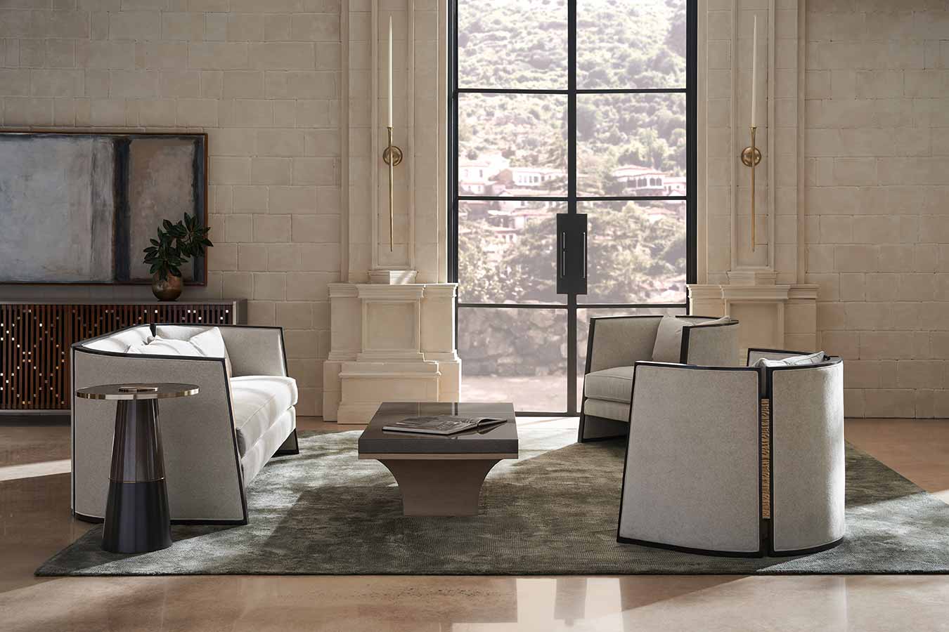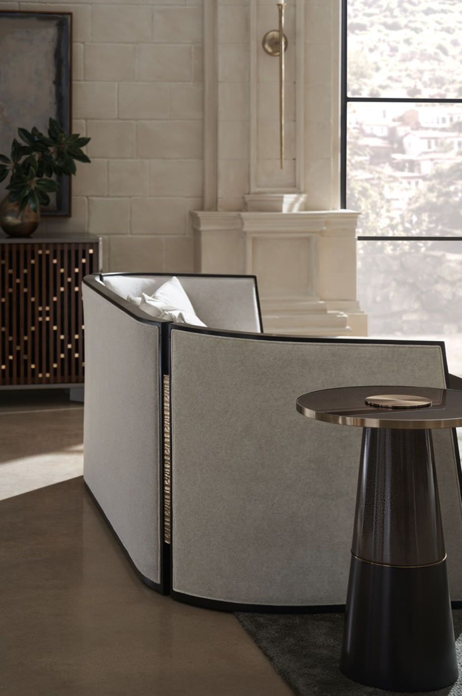 Диван Cut Away — это воплощение утонченной элегантности и мастерства. Его изысканный профиль поражает своей архитектурной гармонией, особенно при взгляде сбоку или сзади. Название модели отсылает к вырезу классической мужской рубашки, а внимание привлекают изящные металлические вставки цвета матового золота, деликатно подчёркивающие вертикальные разрезы спинки. Скошенные подлокотники, вдохновлённые формой трёхпанельной ширмы, создают тонкую, сужающуюся линию, добавляя динамичности и геометричности силуэту. Открытая деревянная отделка в тоне Seal Skin завершает этот роскошный образ, придавая дивану тепло и глубину, достойную истинных ценителей роскоши и стиля.