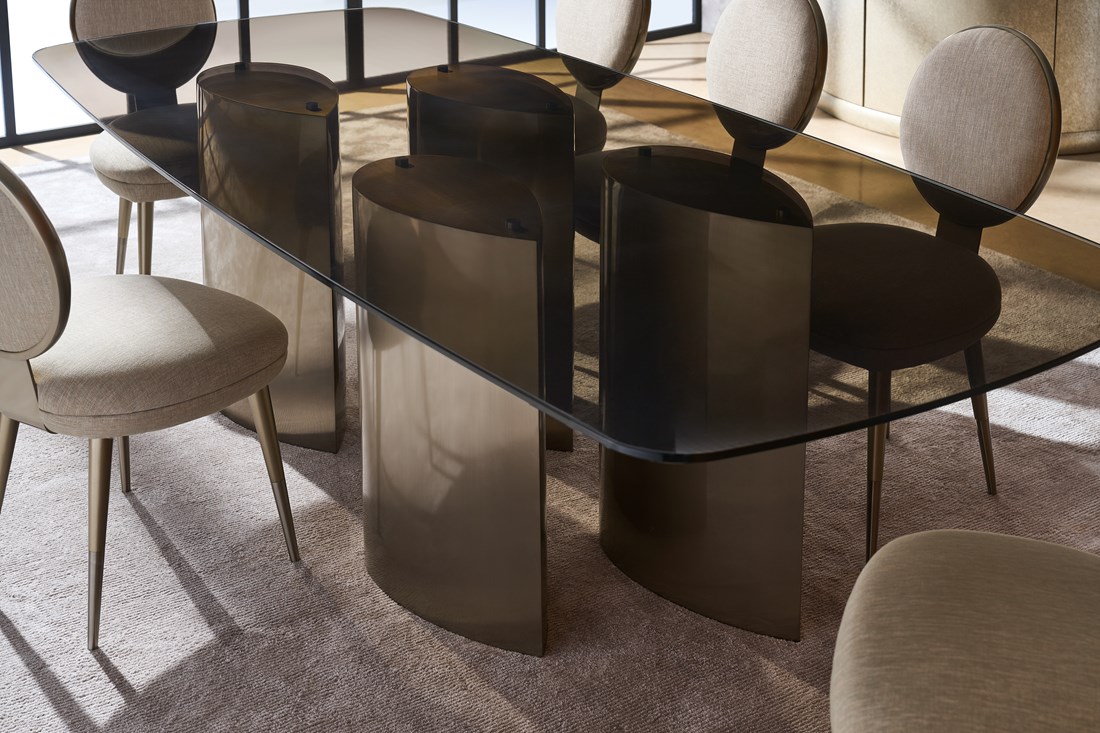 Обеденный стул Apollo — изысканный пример современного неоклассицизма, который привносит в интерьер уют и утонченное сияние. Закругленная спинка и обивка из роскошной золотой ткани с металлическим отливом создают мягкий, но выразительный акцент.