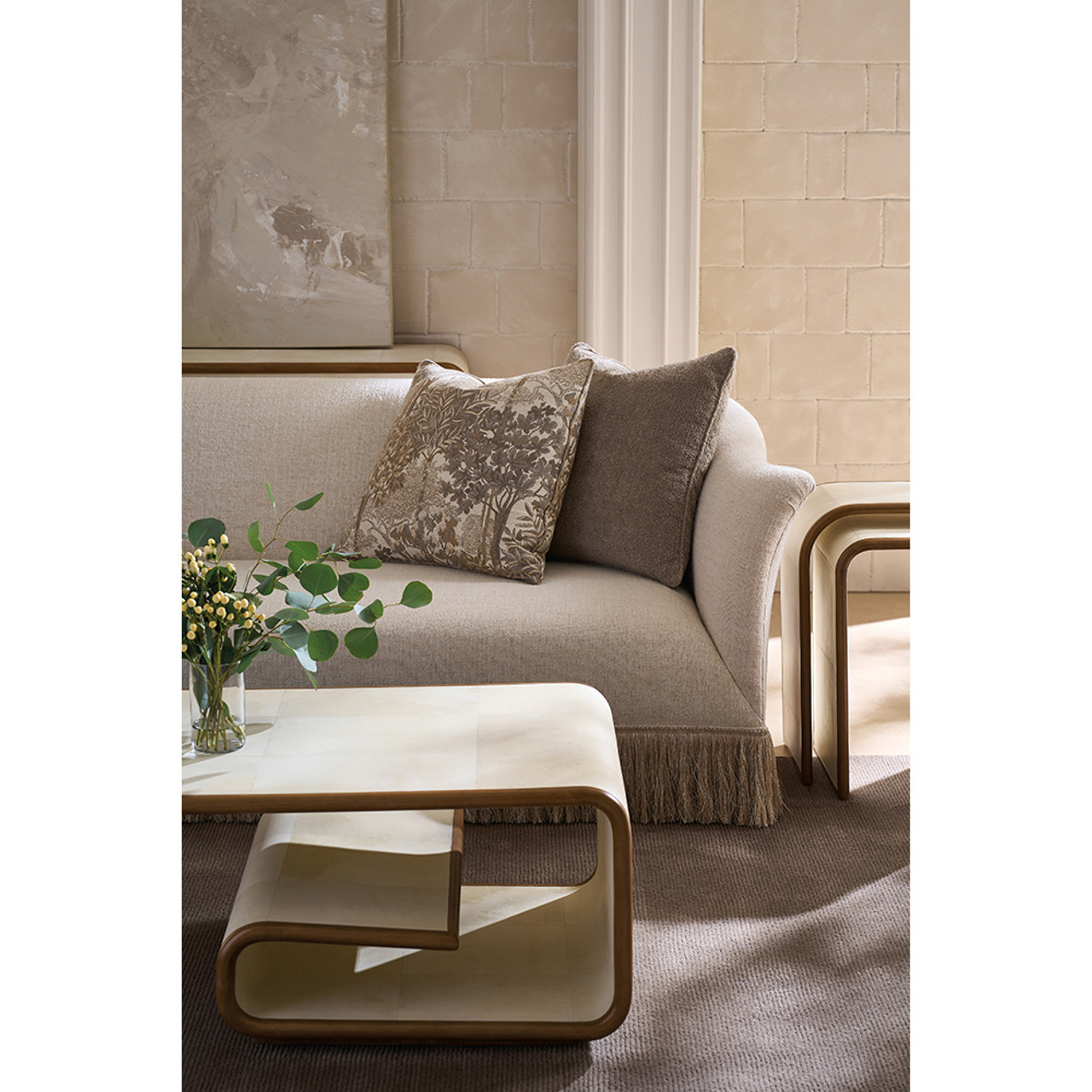 Журнальный стол Delano — воплощение элегантного сочетания формы и функции с отсылкой к стилизованным мотивам греческого ключа. Его изогнутый силуэт с каскадными краями создает мягкую динамику и визуальный интерес, органично вписываясь в современные интерьеры.