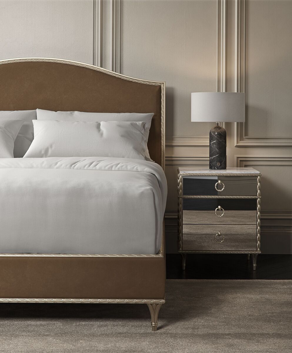 Кровать Fontainebleau воплощает вечное величие природы и роскоши, вдохновлённое лавровым листом — символом победы и утончённости, который веками использовался в искусстве и дизайне. Эта оригинальная кровать-платформа привносит нотки эпохи Рококо благодаря своим изящным архитектурным мотивам, резным молдингам и декоративным элементам.