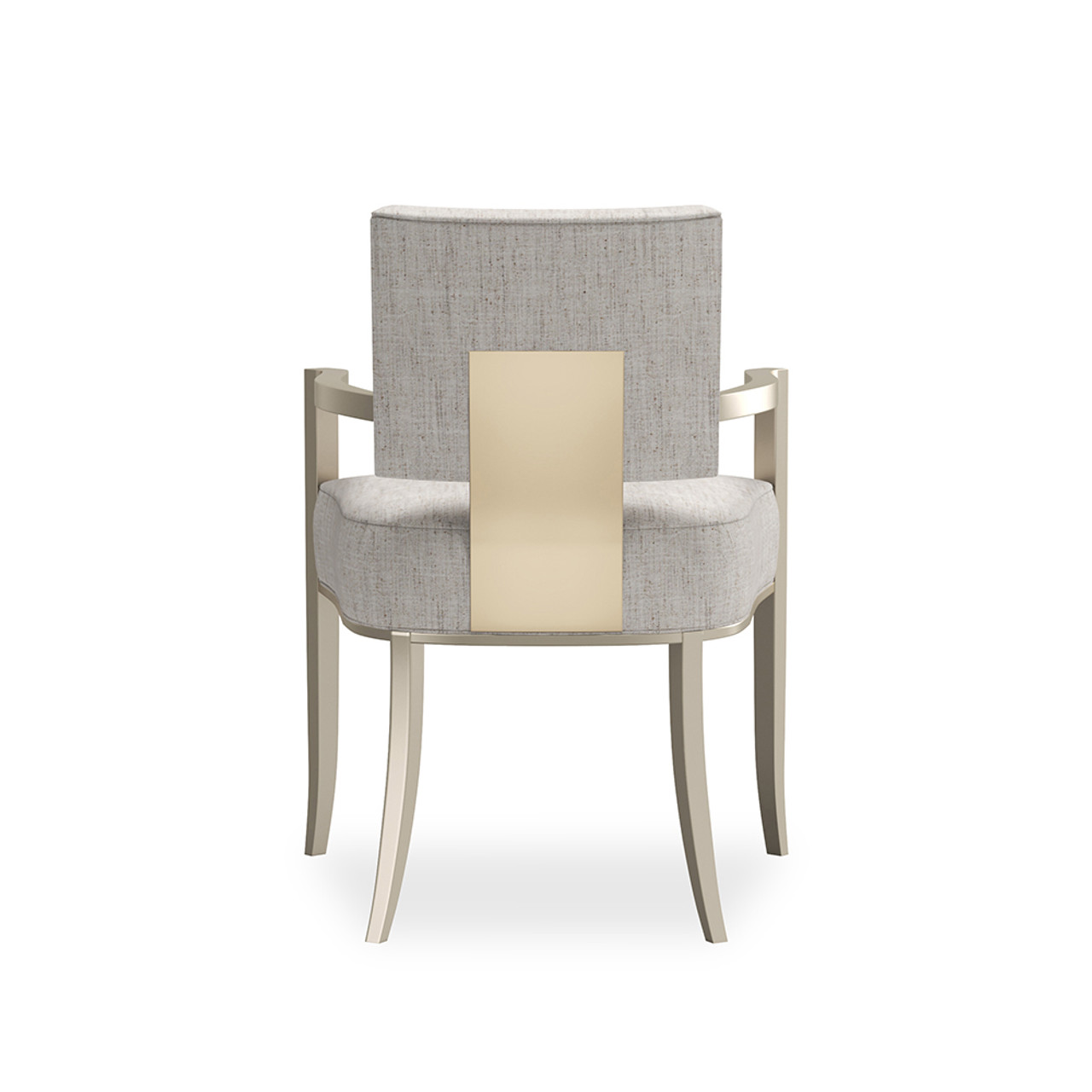 Его уникальность подчеркивает широкая золотая панель Whisper of Gold, сияющая на спинке и придающая выразительный акцент. Нейтральная обивка мягко охватывает квадратную верхнюю часть спинки и подушку сиденья, создавая гармоничный и сбалансированный образ.