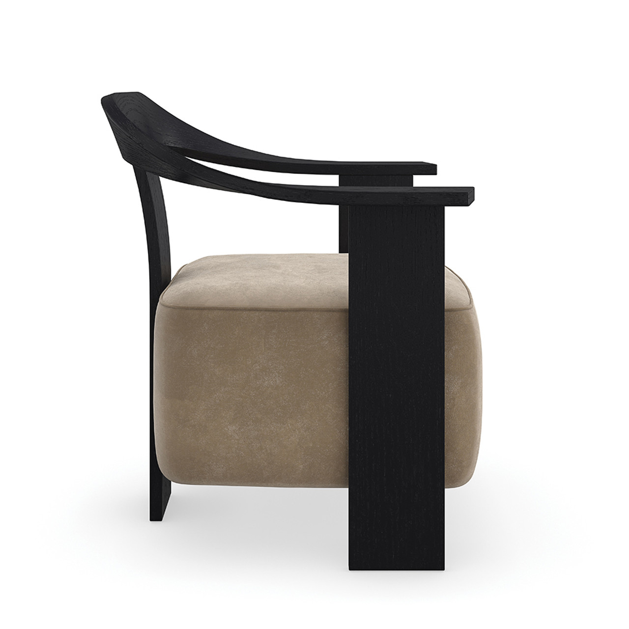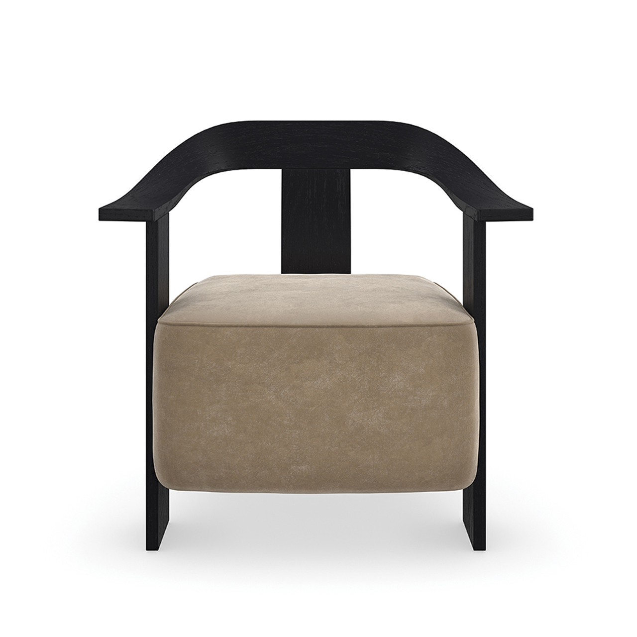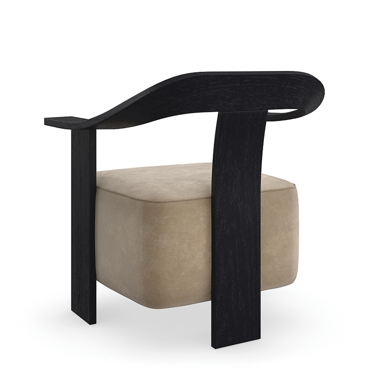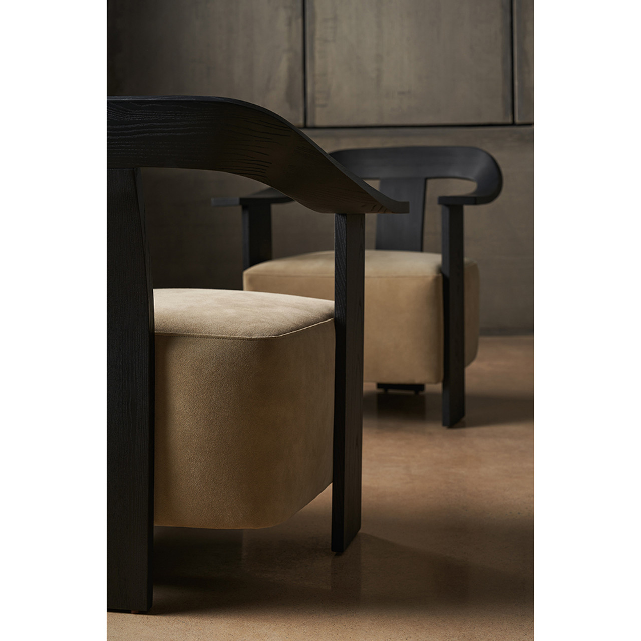 Мягкое замшевое сиденье с утончённым силуэтом создаёт ощущение невесомости, гармонично вписываясь в выразительный каркас из шпона. Глубокая базальтовая отделка усиливает драматичный контраст, добавляя стулу роскошь и утончённость.