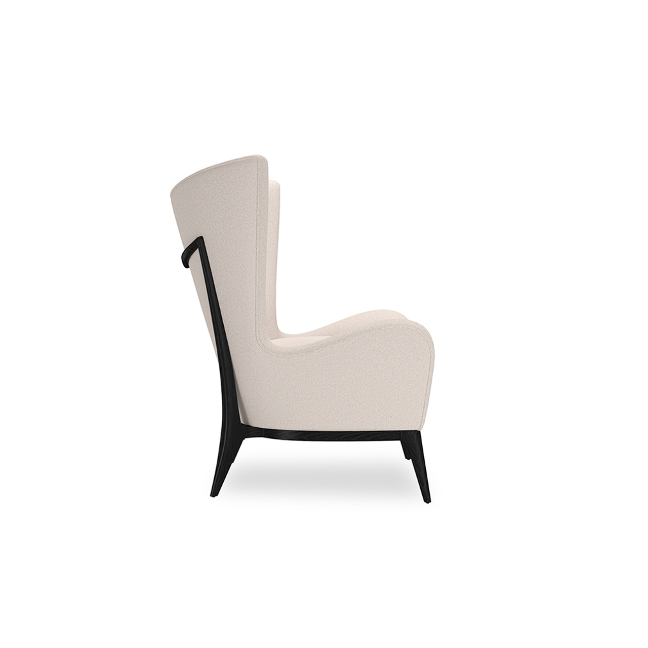 Уникальное кресло What's New Pussycat? — это истинное воплощение скандинавского стиля с современным акцентом. Его характерная круглая спинка, обрамлённая изящными деревянными деталями в элегантной ореховой отделке, привносит в дизайн теплоту и природную гармонию. Покатые подлокотники плавно перетекают в мягкую обивку, создавая ощущение уюта и обволакивающего комфорта.