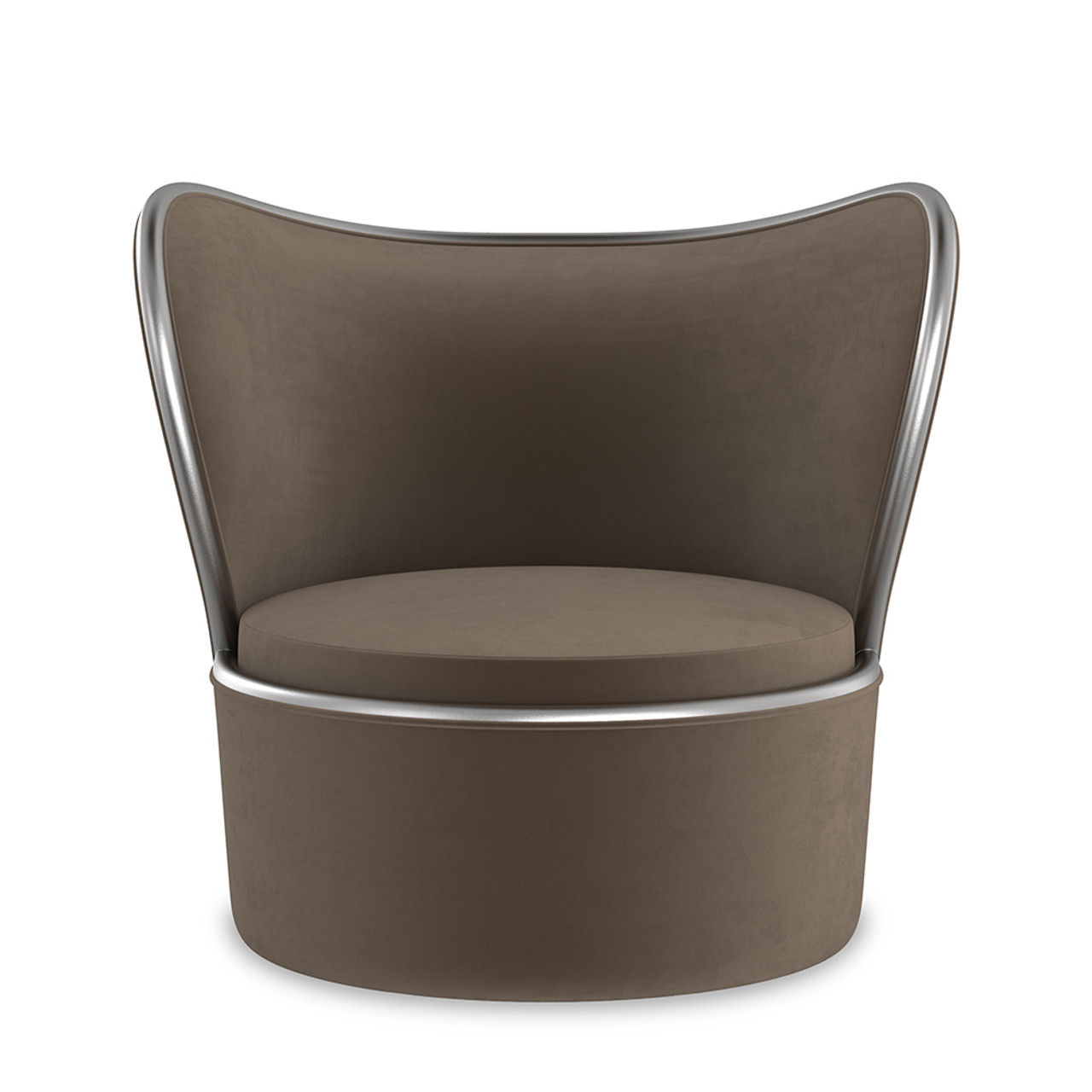 Вращающееся акцентное кресло Mariposa, названное в честь испанского слова «бабочка», словно парит в воздухе, сочетая легкость и изящество. Полностью обитое роскошным бархатом цвета тёмного таупа, напоминающим нежную ангору, оно приглашает вас утонуть в мягкой глубине сиденья и ощутить уют обволакивающей спинки с изящно расправленными «крыльями».