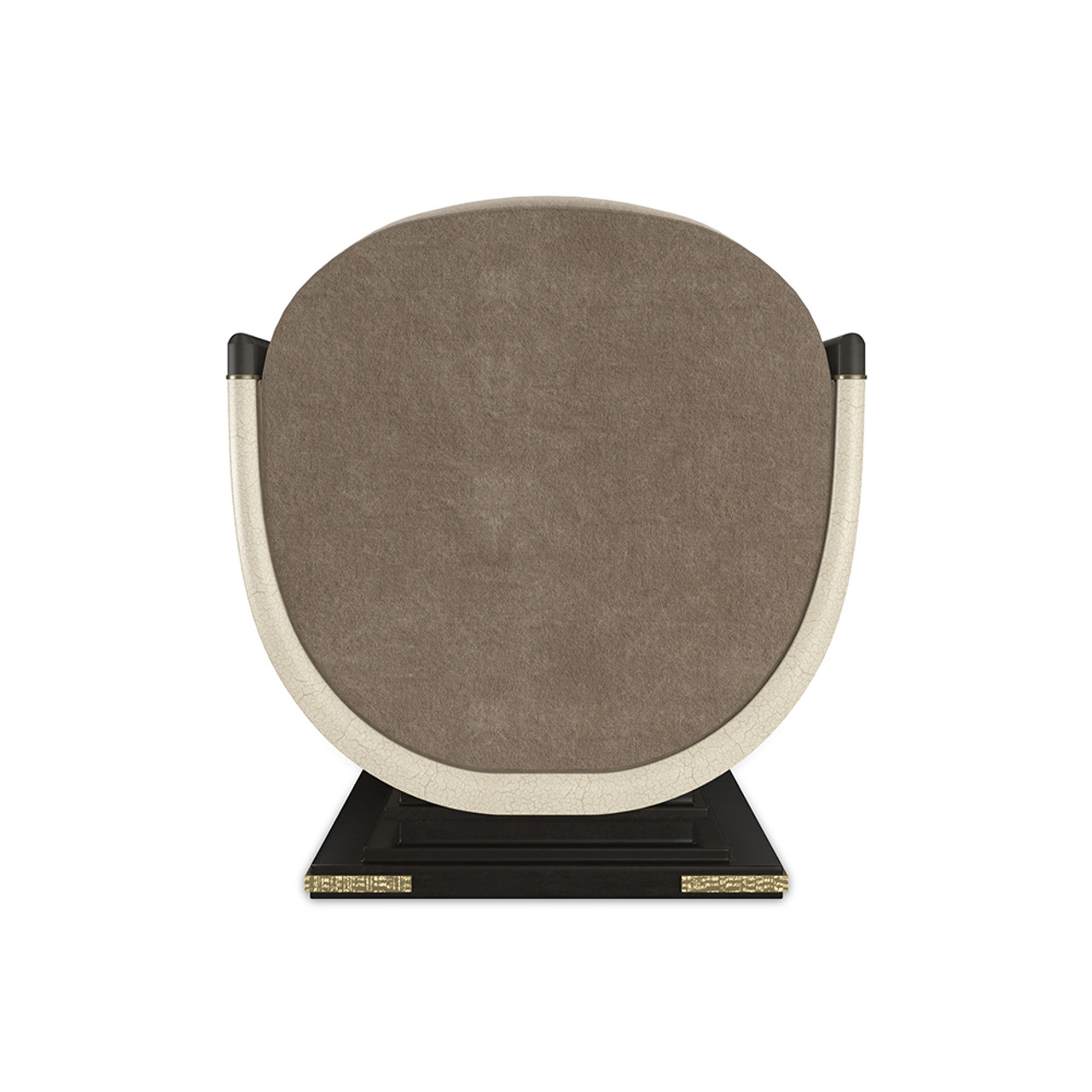 Кресло Helena — это современная интерпретация классических римских форм, воплощающая элегантность и безупречный стиль. Глубокий деревянный каркас с изысканным кракелюрным покрытием Ivory Craze и утончённой отделкой Brushed Gold притягивает взгляд своей скульптурностью. Каркас опирается на деревянное основание цвета древесной коры, украшенное металлическими угловыми аппликациями в оттенке матового золота, что добавляет нотки роскоши и архитектурной выразительности.