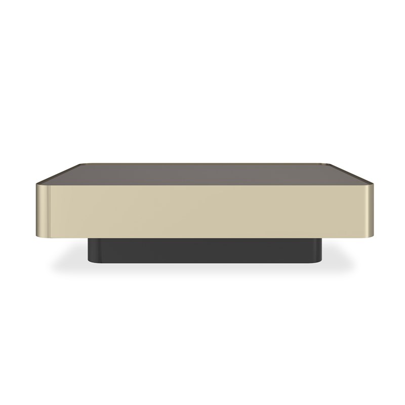 Зеркальная столешница цвета дымчатой бронзы обрамлена металлом с зеркальной полировкой в тоне Whisper of Gold — блеск и драматичность в одном предмете. Компактное основание в цвете Dark Chocolate придаёт устойчивость и завершённость.