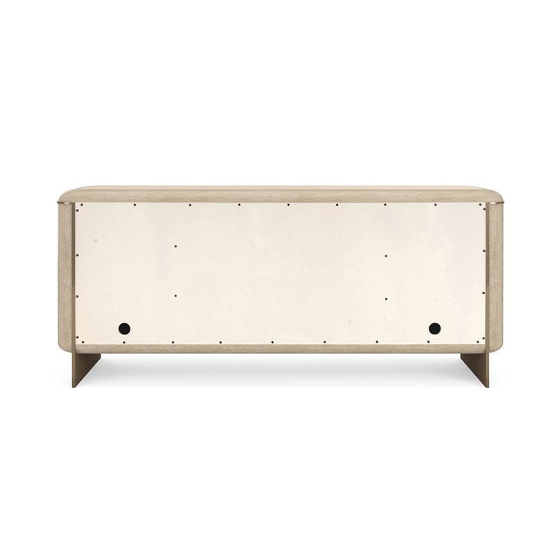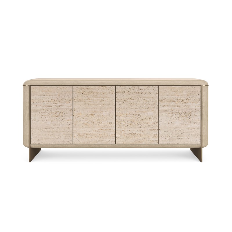Как и пустыня, в честь которой она названа, эта консоль отражает природную красоту — плавные формы, мягкий свет и тёплую текстуру. Скруглённые углы «бычий нос» придают строго прямоугольной форме мягкость и пластичность. Верх, боковины и основание выполнены из дуба с эффектом выбеленного солнцем дерева. Контраст создают фасады, облицованные натуральным травертином с живой текстурой. По верхнему контуру и вдоль дверей проходят тонкие металлические вставки цвета Whisper of Gold, добавляющие сияние. Внутри — отделка в тоне «миндальное молоко», четыре регулируемые полки и предусмотрены отверстия для кабелей. Конструкция опирается на тонкие, едва заметные ножки, создавая ощущение лёгкости.