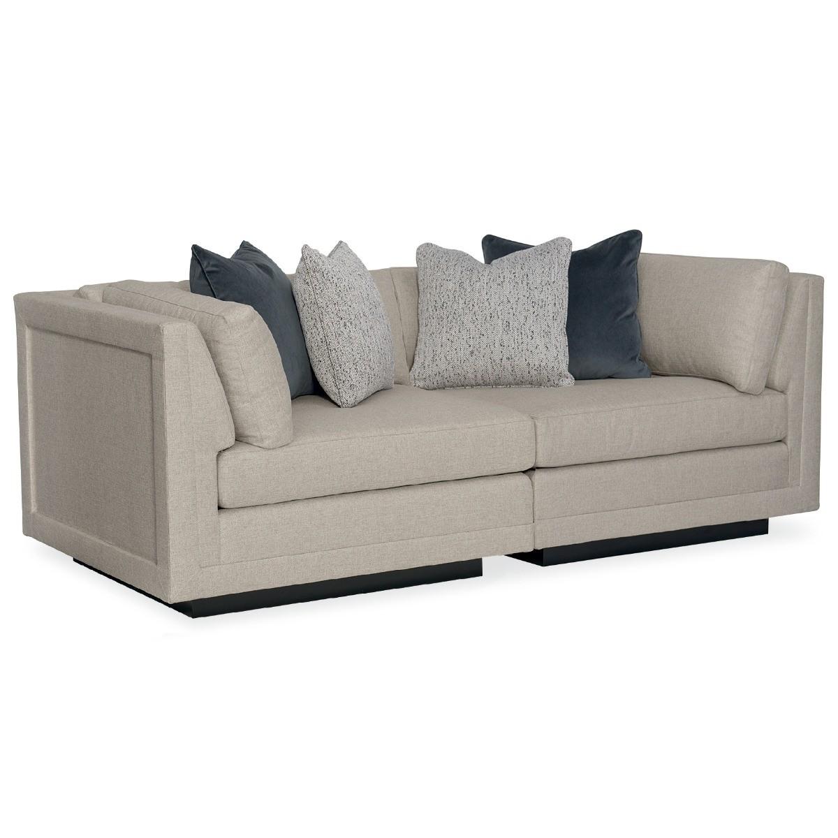 Мягкий модульный диван Modern Fusion от американского мебельного бренда Caracole — это воплощение повседневной элегантности и символ современного образа жизни. Универсальность этого роскошного дивана позволяет комбинировать самостоятельные модули по вашему желанию, создавая идеальную конфигурацию в любом интерьере. Безукоризненно выполненная обивка из фактурной твидовой ткани придает нейтральный стиль, вдохновленный современной модой. Контрастные декоративные подушки из вельвета и тонкого рубчатого плиса темно-серого цвета с легким голубым оттенком, а также с современной черно-белой прошивкой «елочкой» придают модели дополнительный комфорт. Вырезанный квадрат на внешней стороне спинки и основание из древесины темного оттенка добавляют необходимую симметрию в эстетику изделия.