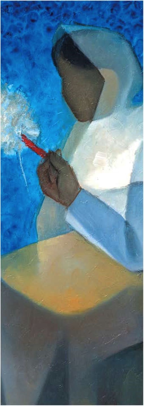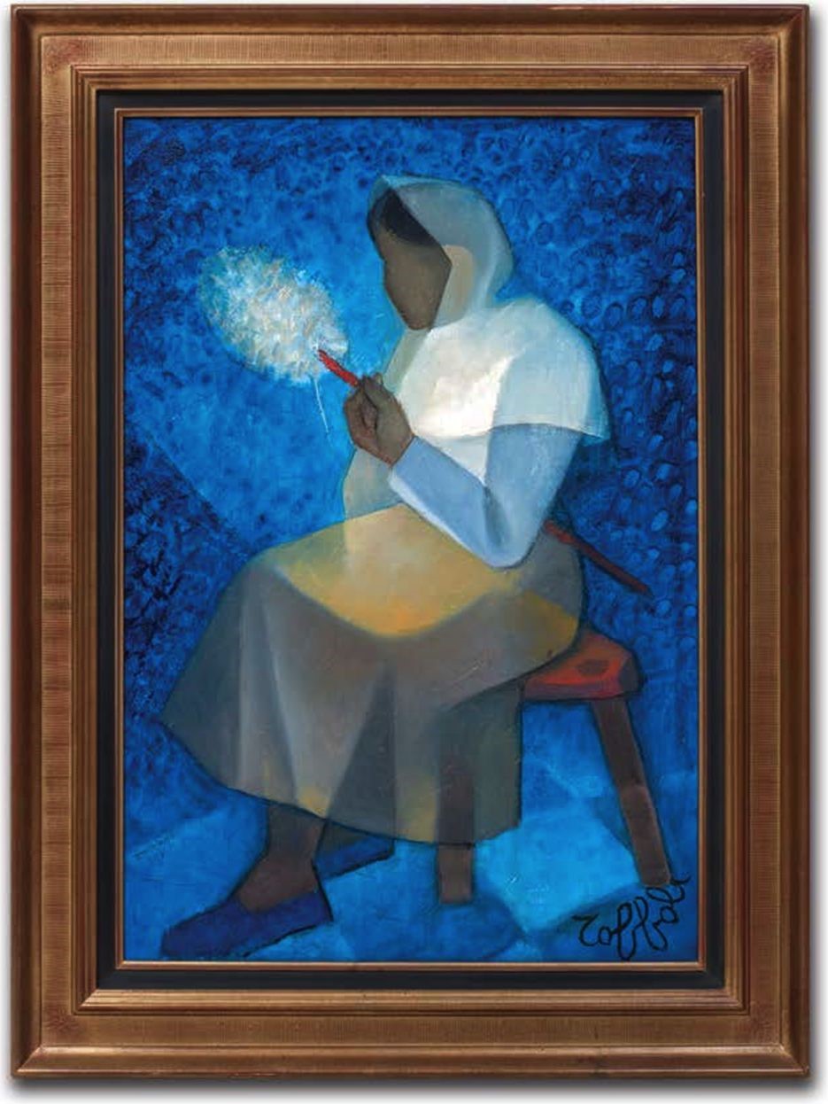 «Великая Мать с веретеном жизни» написана Тоффоли в стиле фовизм. Художники-фовисты стремились к максимальному использованию колористических возможностей живописи. Природа, пейзаж, люди служили им не столько объектом изображения, сколько поводом для создания экспрессивных, напряженных цветовых симфоний, однако не порывающих с окружающей действительностью. Природные мотивы фовисты предельно усиливали и обостряли, используя цветной контур для отделения красочных пятен друг от друга. Повышенная светоносность цвета, отсутствие светотеневой моделировки, организация пространства с помощью света свойственны для этого направления. Синий фон, вибрирующий и стекающий сверху в виде больших «капель дождя», внутреннее свечение женской фигуры, сидящей на «троне» и держащей веретено, как светящийся жезл - все элементы в совокупности способствуют возникновению прямых ассоциаций с образом Великой Матери. Веретено, прялка и все действия, связанные с прядением, являются символами жизни и непрерывности времени. М.Шнайдер пишет, что веретено является атрибутом Великой Матери, которая прядет внутри каменной горы или у подножия Мирового древа нити человеческих жизней.