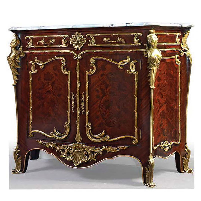 Комод 19 века, выполнен из дерева, бронзы и мрамора.