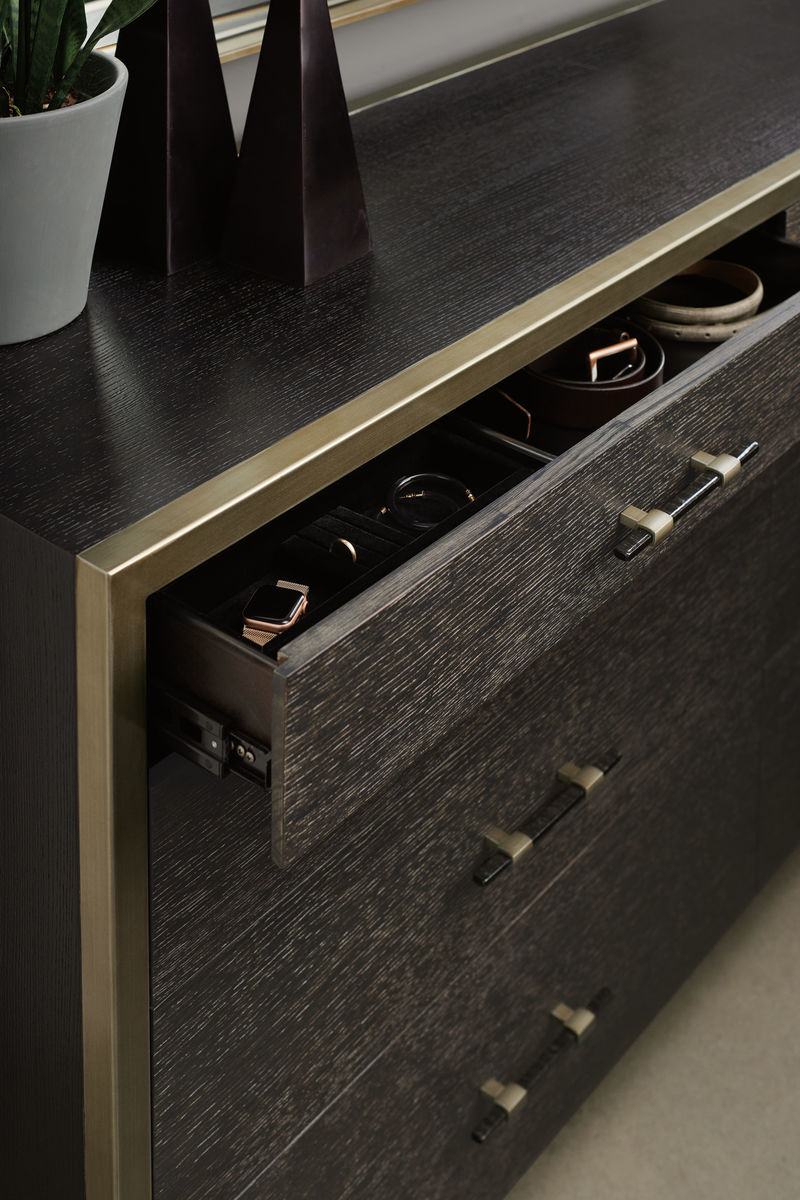 Комод Remix Double из коллекции Modern Artisan Remix американского бренда Caracole заставит вас обернуться. Смелое современное сочетание финишей и материалов передает сдержанный городской колорит. Каркас из окрашенного ясеня в темной отделке (Black Stained Ash) дополнен металлической рамой в бронзовой отделке. Фасады вместительных выдвижных ящиков отделаны дубом и акцентированы изготовленной на заказ фурнитурой.