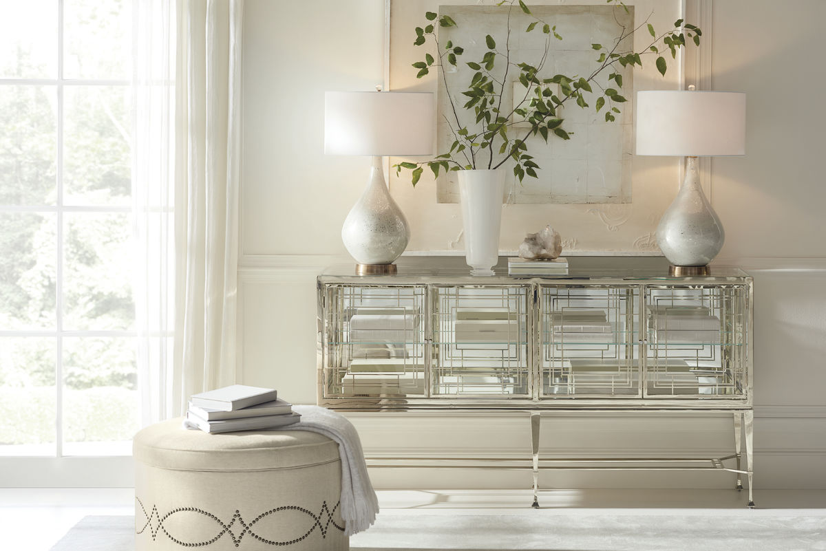 Прозрачный со всех сторон буфет Worth Its Weight In Gold преподнесет коллекцию любимых сокровищ в лучшем свете. Стеклянные панели и металл, окутанный золотым напылением, создают безупречный союз, не правда ли?