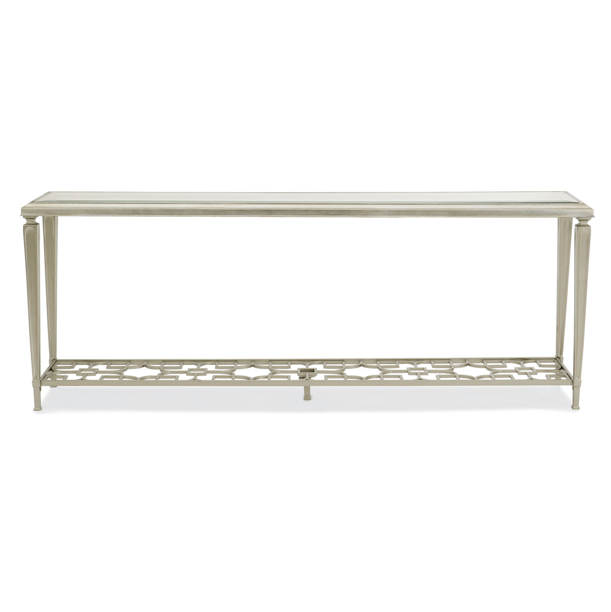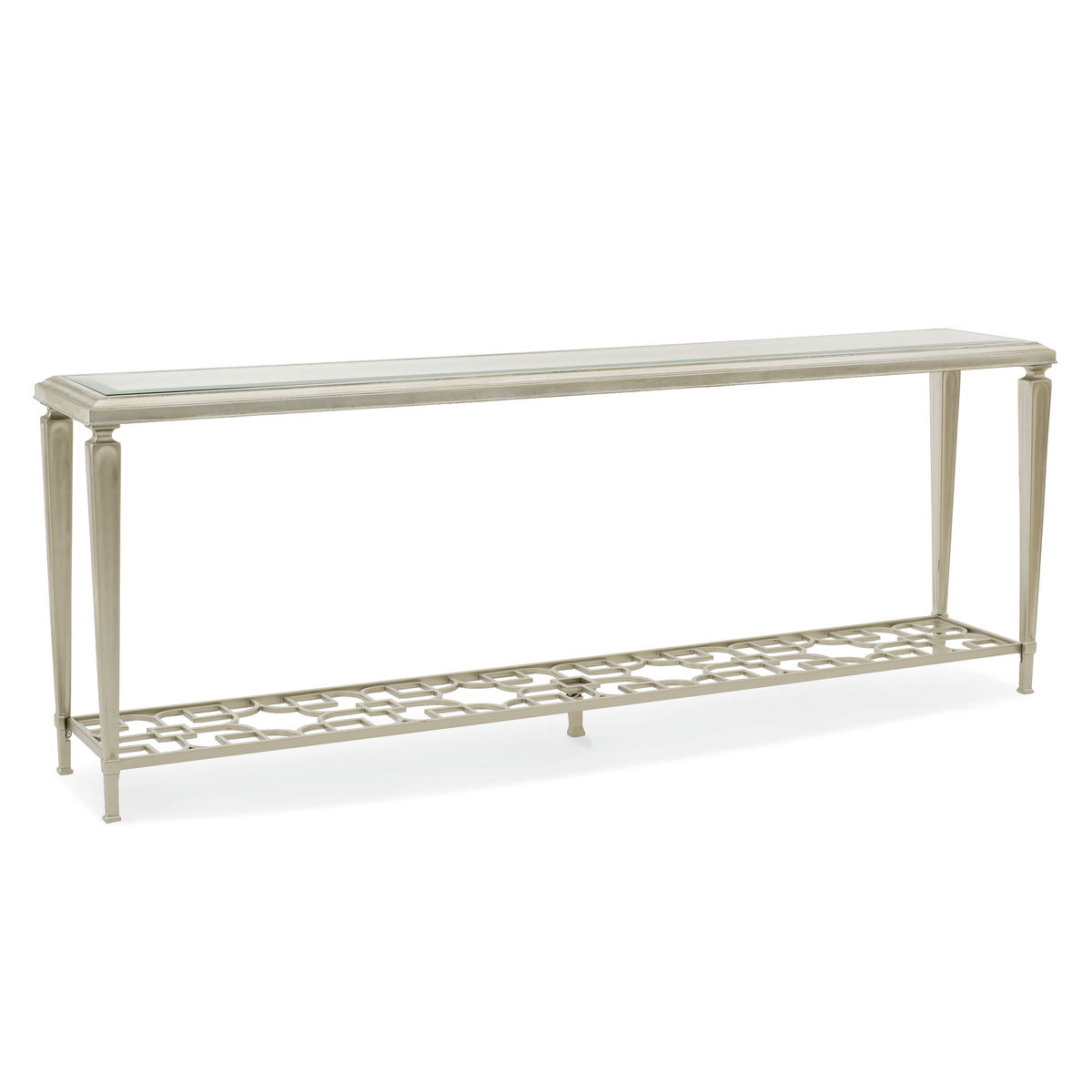 Легкая и элегантная в своей простоте консоль Highly Social обладает неповторимым шармом и привлекает внимание мягкой отделкой серебристой поталью и изящными резными ножками. Главным украшением этой дизайнерской консоли американского бренда Caracole служит причудливая металлическая полочка с витиеватым узором, который выглядит еще интереснее, если смотреть на него сквозь прозрачную столешницу из закаленного стекла. Консоль уместна всюду, где требуется немного изыска.
