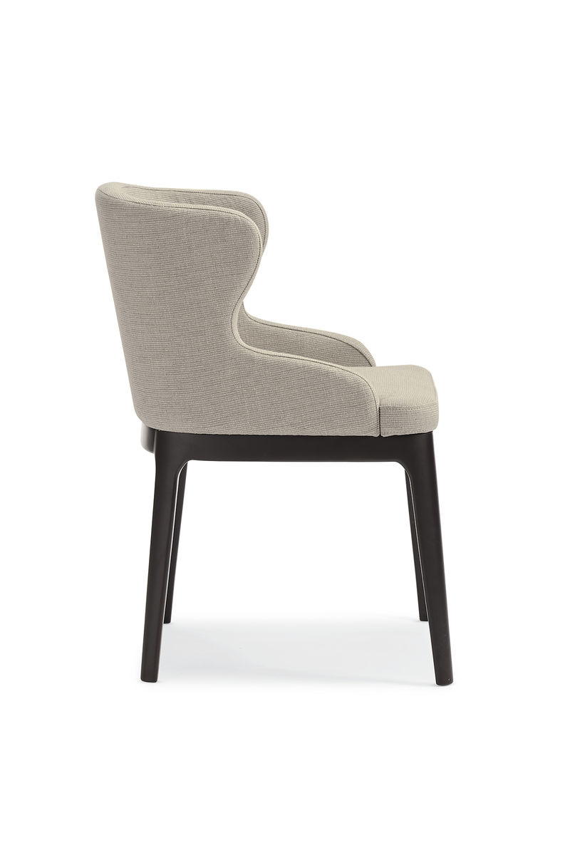 Дизайнер Хосе Лейте де Кастро — эксперт в создании теплой гостеприимной атмосферы во время продолжительных обедов. Эти необычайно удобные стильные стулья с низкой спинкой, фигурными подлокотниками и мягким сиденьем созданы для того, чтобы окружать комфортом. Модель, наделенная европейским силуэтом, обита сияющей плетеной тканью с актуальной горизонтальной полоской. Закругленное основание и слегка изогнутые ножки изделия покрыты черным лаком. Восемь таких изящных стульев вместе с обеденным столом Lifestyle создадут в столовой удивительно гармоничный ансамбль.