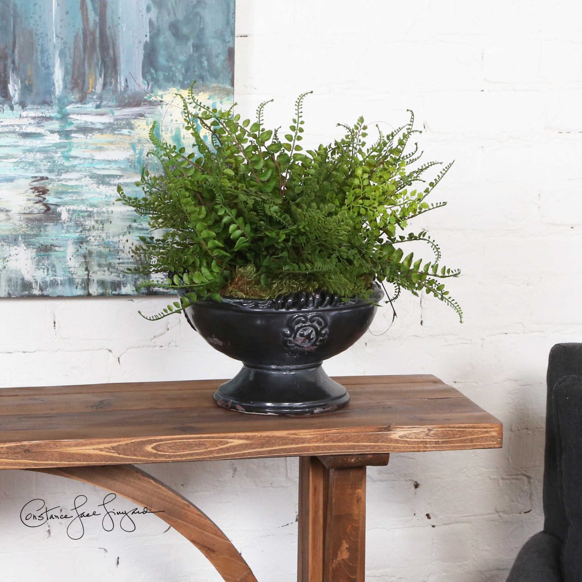 Искусственное растение в чаше AMBERLY ТМ Uttermost Constance Lael-Linyard – искренность исполнения керамической вазы, оформленной черным цветом с эффектом старины. Возникает желание сразу же перенести ее в сад, оформить вход или ступени эффектным зеленым растением из материалов премиум класса, которые не разочаруют ни в зной, ни в стужу, сохраняя безупречный вид на долгие годы.