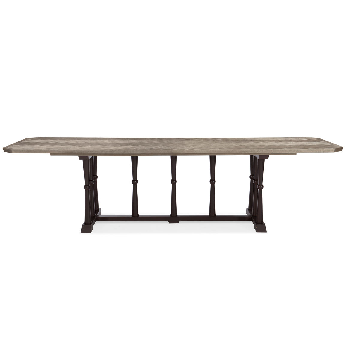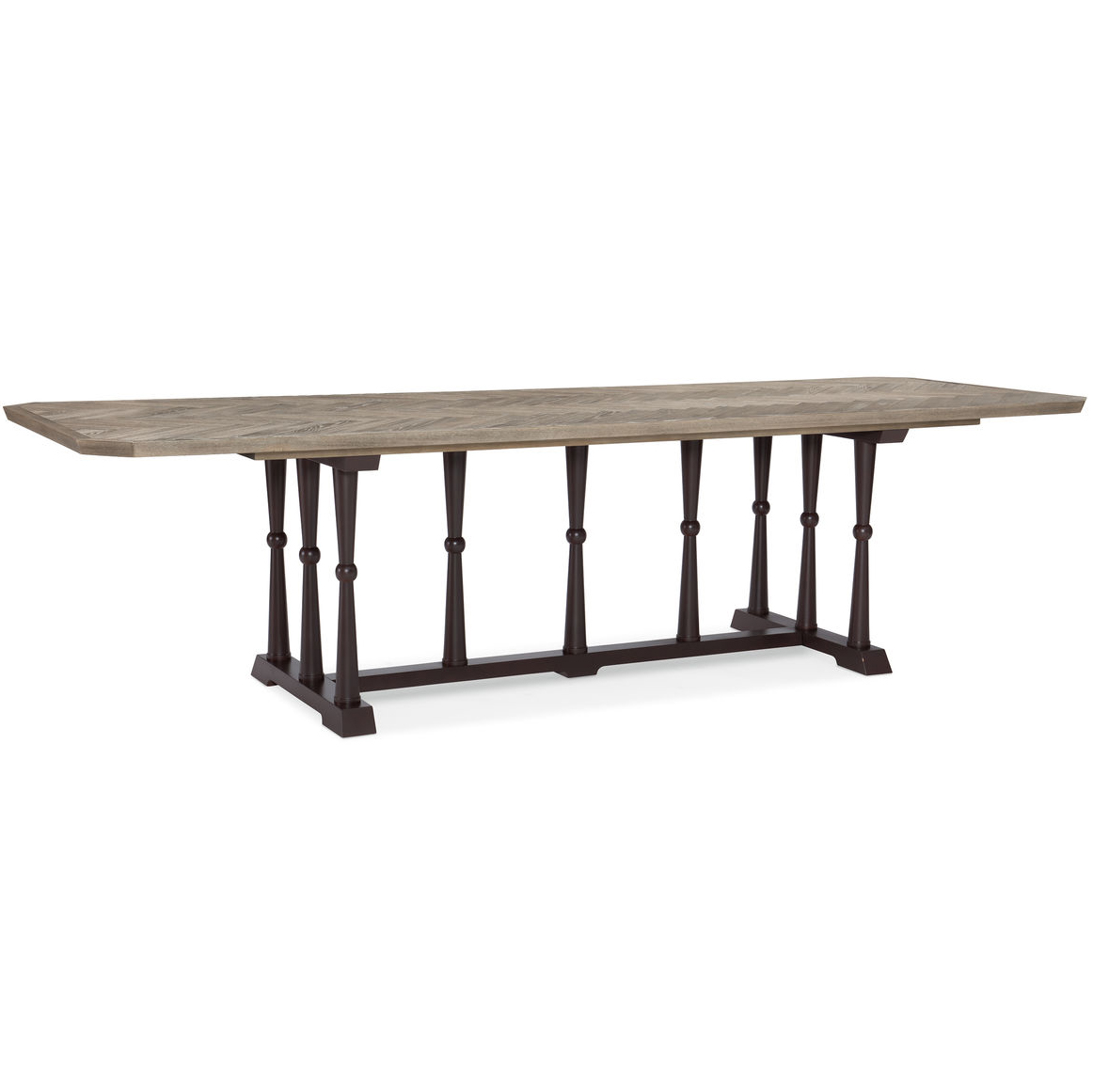 Уже любимый многими элегантный прямоугольный обеденный стол Dinner Circuit 96, спроектированный американским мебельным брендом Caracole, очаровывает во всех отношениях. Прочное основание в отделке шоколадной бронзы выгодно выделяется на фоне светлой отделки столешницы с текстурой ясеня (Ash Driftwood) с паркетным рисунком. Напоминающий старинные столы в замках, он позволит почувствовать дух средневековья в вашей столовой или гостиной зоне. Этот замечательный предмет комфортно разместит вокруг себя до 10 человек. Изделие требует к себе внимания и приглашает к столу.