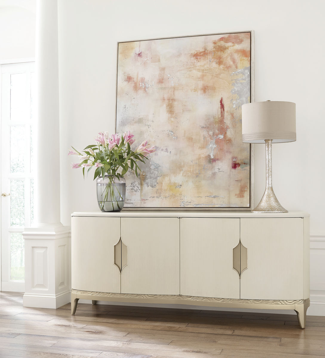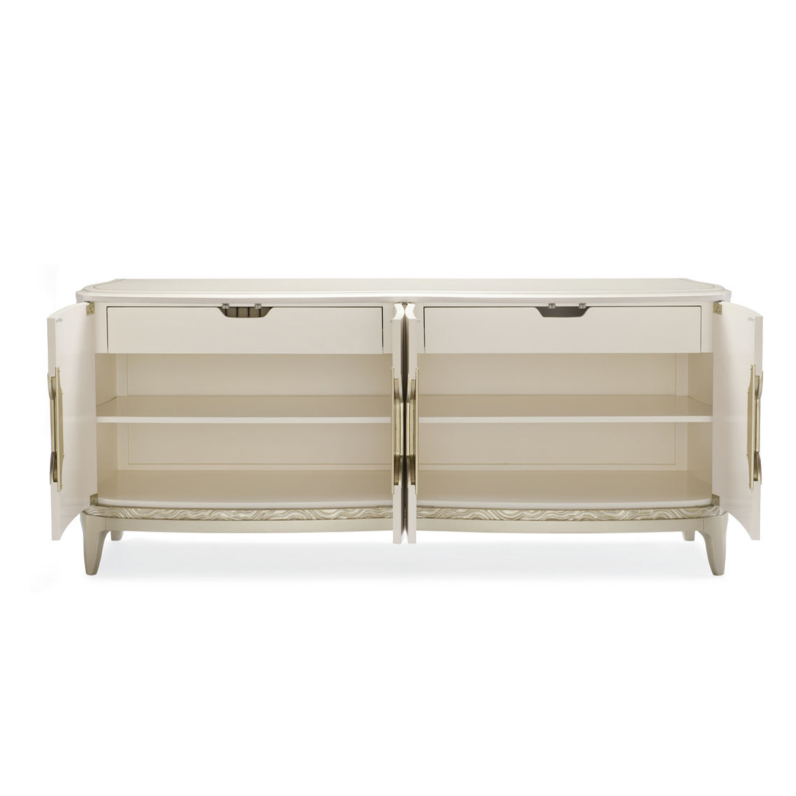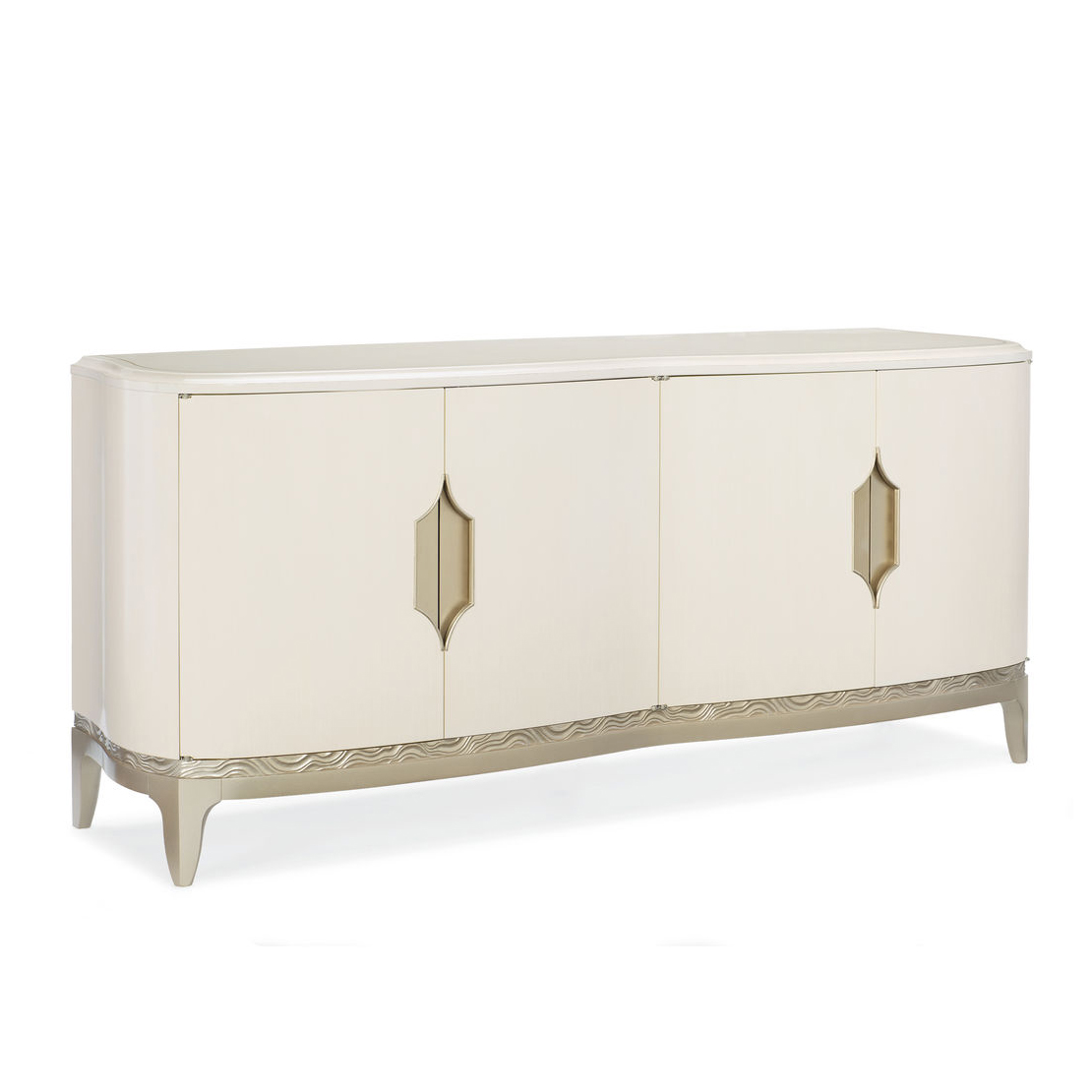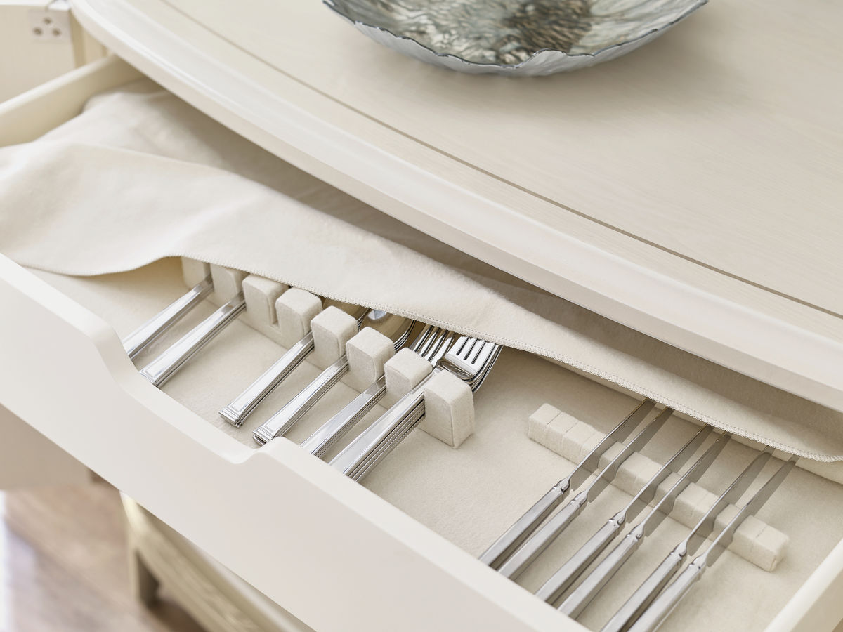 Буфет Adela американского бренда Caracole станет восхитительным дополнением вашей столовой комнаты. Округлые и мягкие линии в сочетании с кремовой отделкой изделия добавят света и уюта пространству, а ручки вырезанные в астроидном элементе добавляют этой модели особенную изюминку. За четырьмя дверцами вы найдете два ящика для подносов с тонким трафаретом. С каждой стороны шкафа также есть по одной регулируемой полке.