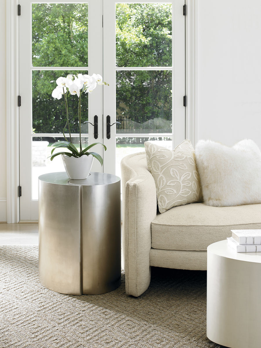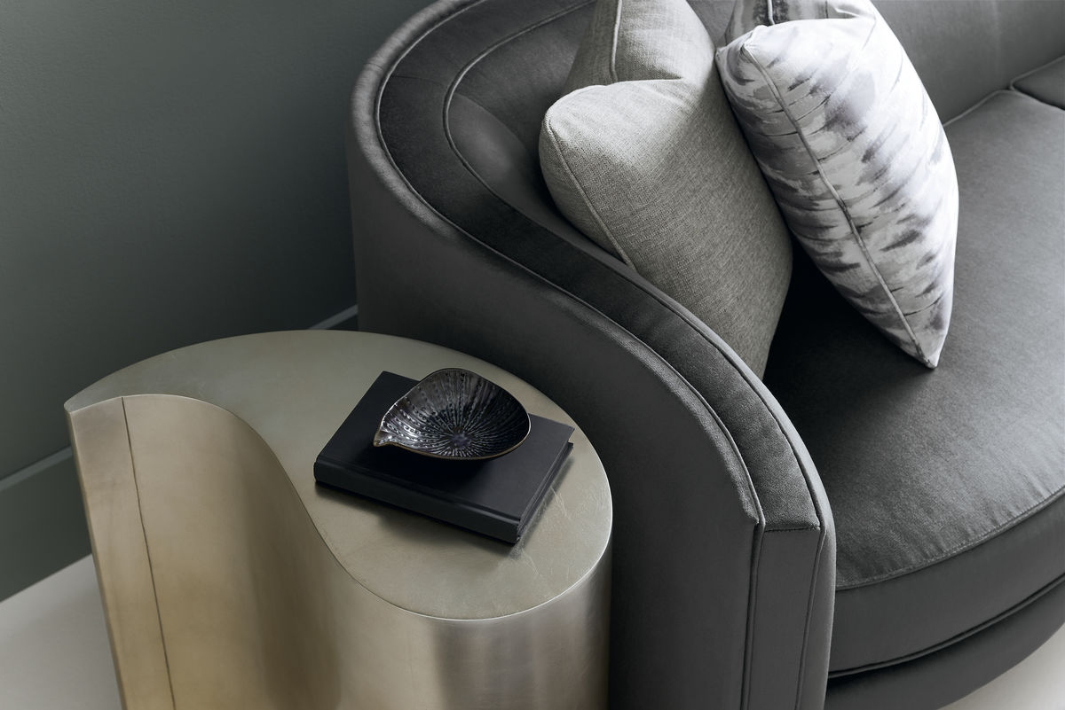 Этот необычной формы боковой столик от американского бренда Caracole станет центральным предметом в интерьере вашей гостиной комнаты. Вы можете использовать его в одиночку либо совместив два столика в конфигурации инь и ян. В любом случае, ваши гости наверняка будут очарованы уникальной отделкой стола омбре, которая переходит от теплого серебра к элегантному золоту.