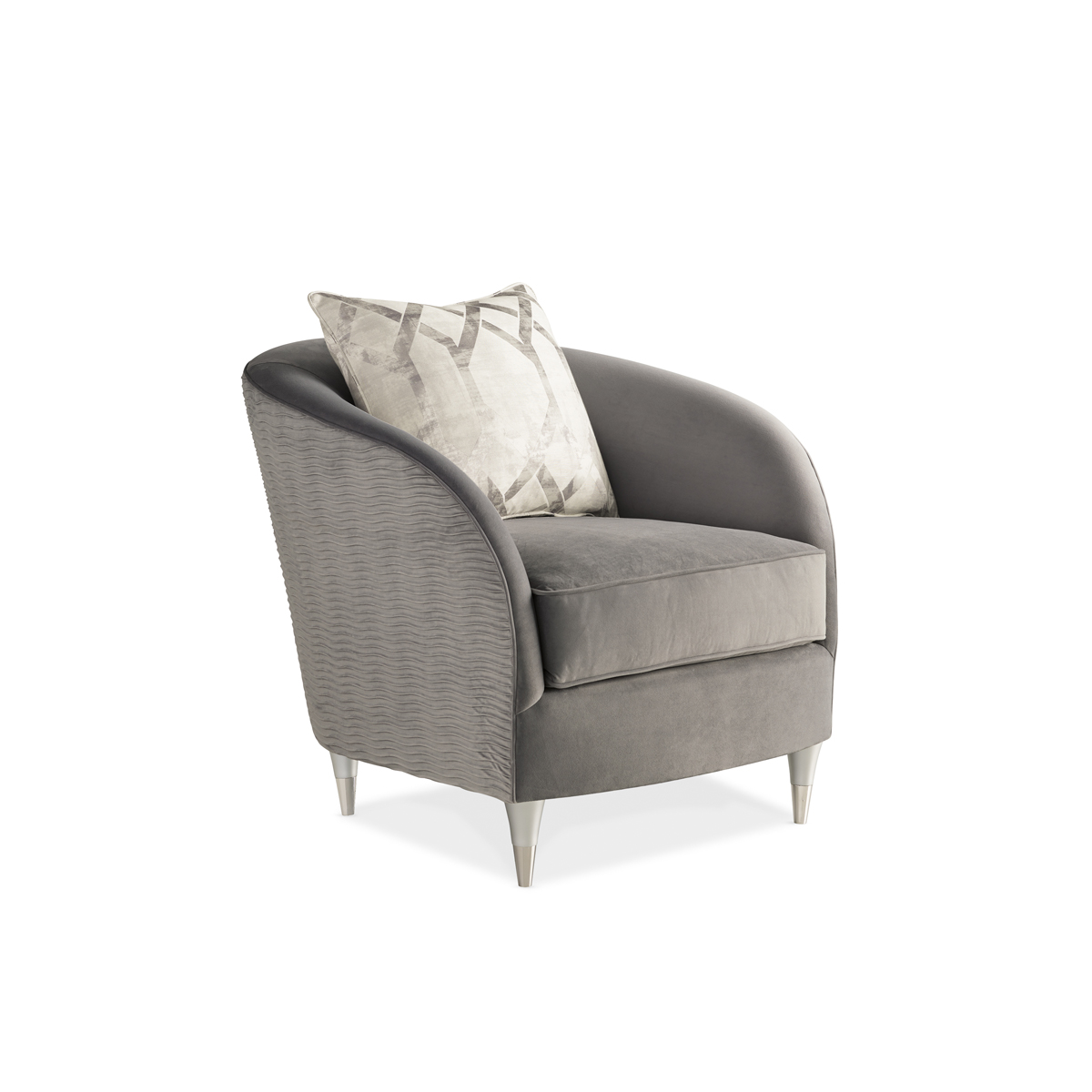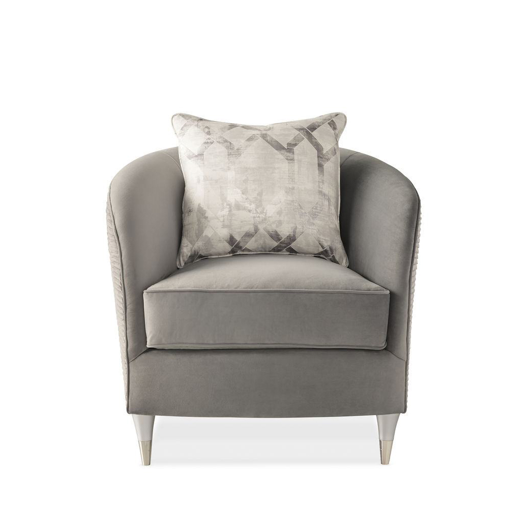 Элегантное кресло Farrah от Caracole определенно задаст фокусную точку в интерьере. Плавные изгибы создают обтекаемый силуэт, передавая чувственность эпохи модерна mid-century. Плиссированный бархат драматично обрамляет внешнюю сторону спинки, создавая визуальный эффект ряби. Декоративная подушка, отливающая металлическим блеском, добавляет изящный акцент; деликатное сияние привносят лаконичные конические ножки, дополненные полированными наконечниками. Сгруппируйте модель с диваном из одноименной коллекции для создания уютной зоны отдыха в гостиной или разместите в спальне, дополнив композицию стильным торшером.