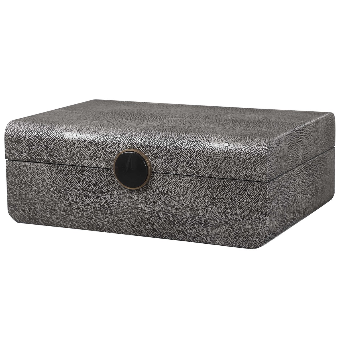 Эта декоративная коробка, вдохновленная эпохой ар-деко, искусно воплощает стиль и роскошь того времени. Ее изысканный внешний вид из искусственной дымчато-серой шагрени приобретает характер благодаря акцентам из матовой старинной латуни и черной эмали. Внутренняя часть коробки выполнена в матовом черном цвете, создавая элегантное и сдержанное пространство для хранения ваших ценных мелочей. Lalique Box - это не только функциональный аксессуар, но и произведение искусства, которое придаст изысканность вашему интерьеру.