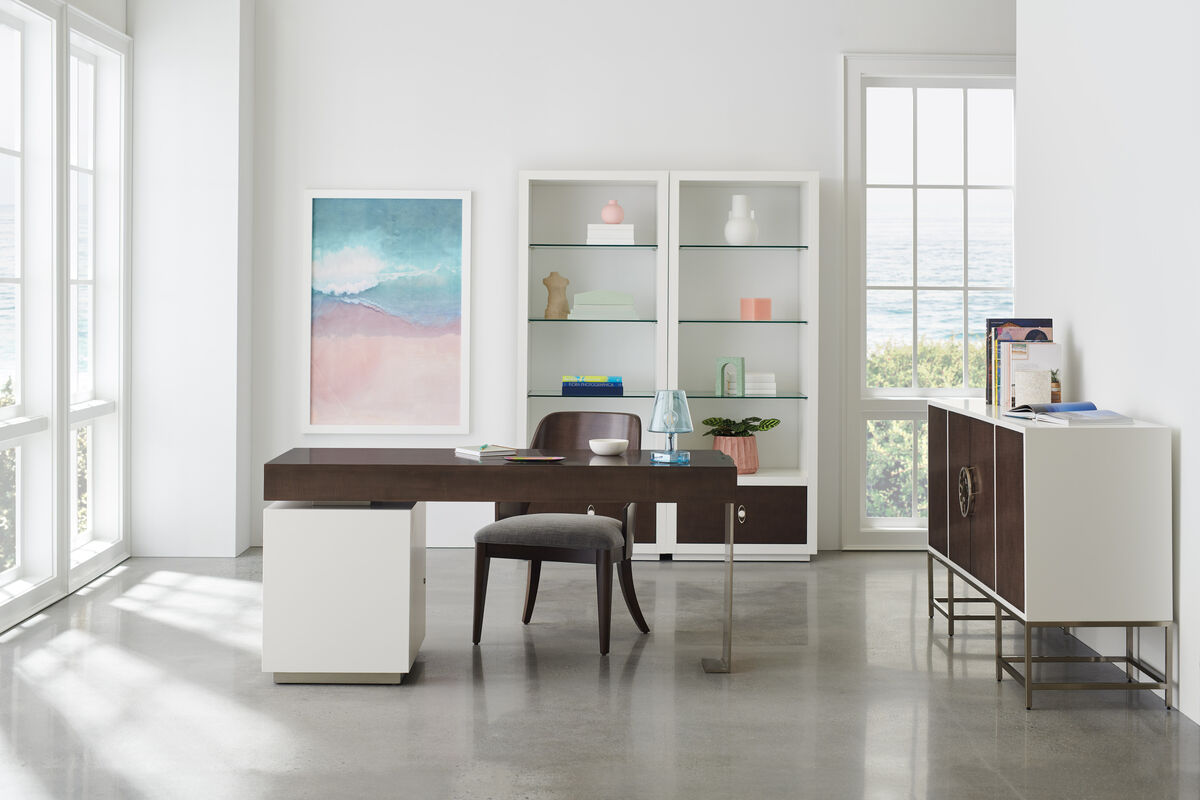 Письменный стол Down To Business, созданный для современного слияния рабочих и жилых помещений, воплощает гармонию функциональности и инноваций. Контраст фигурного шпона сикамора и отделки Cloud White навевает мысли о простоте и единении с природой. Стол оснащен закрывающейся тумбой с двумя выдвижными ящиками для хранения файлов и канцелярских принадлежностей, что позволяет поддерживать порядок и организованность. В сочетании со столом Open for Business, он создает рабочее пространство с несколькими поверхностями для одного человека или мини-офис для двоих, обеспечивая удобство и эффективность в повседневной работе.