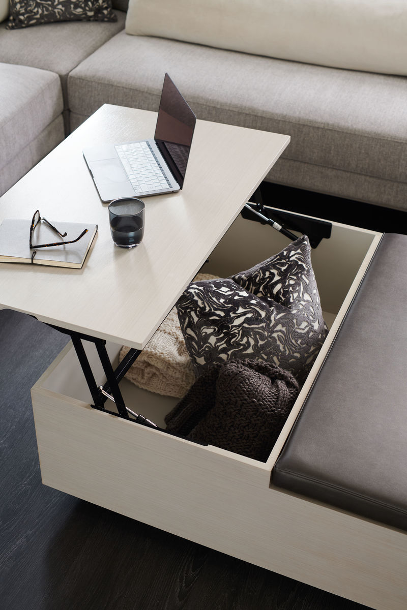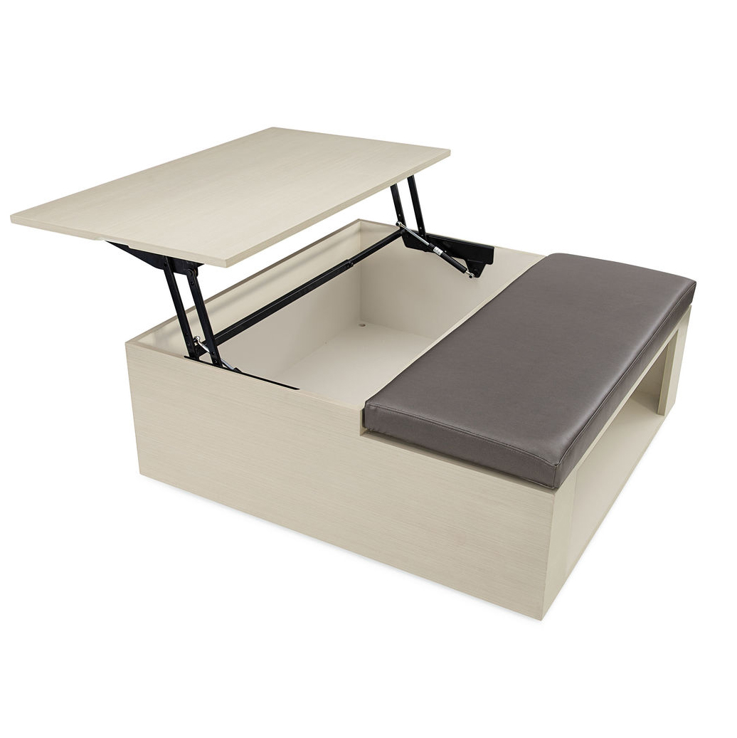 Журнальный столик Repetition — это эффектное дополнение к жилому пространству, где форма и функциональность гармонично сочетаются. Его геометрический силуэт подчеркнут отделкой Ash Taupe, контрастирующей с Mink Gray в открытых и внутренних отделениях. Подъемная столешница делает его идеальным для обедов или работы дома, а мягкая съемная подушка создает дополнительные места для сидения, добавляя удобства и стиль интерьеру.