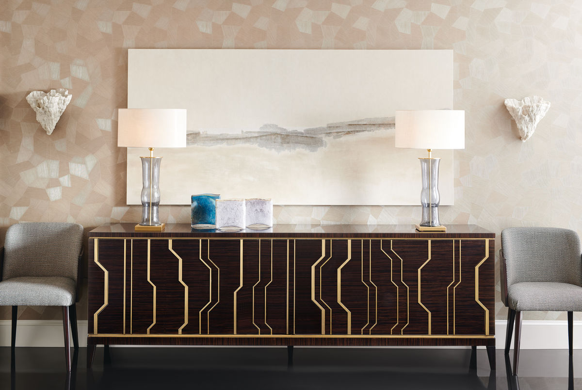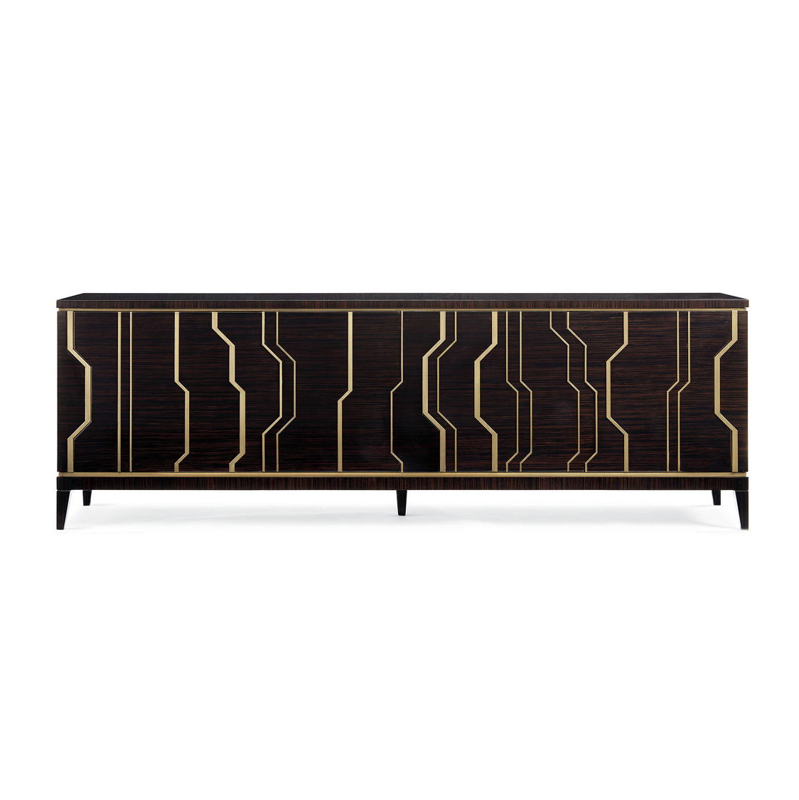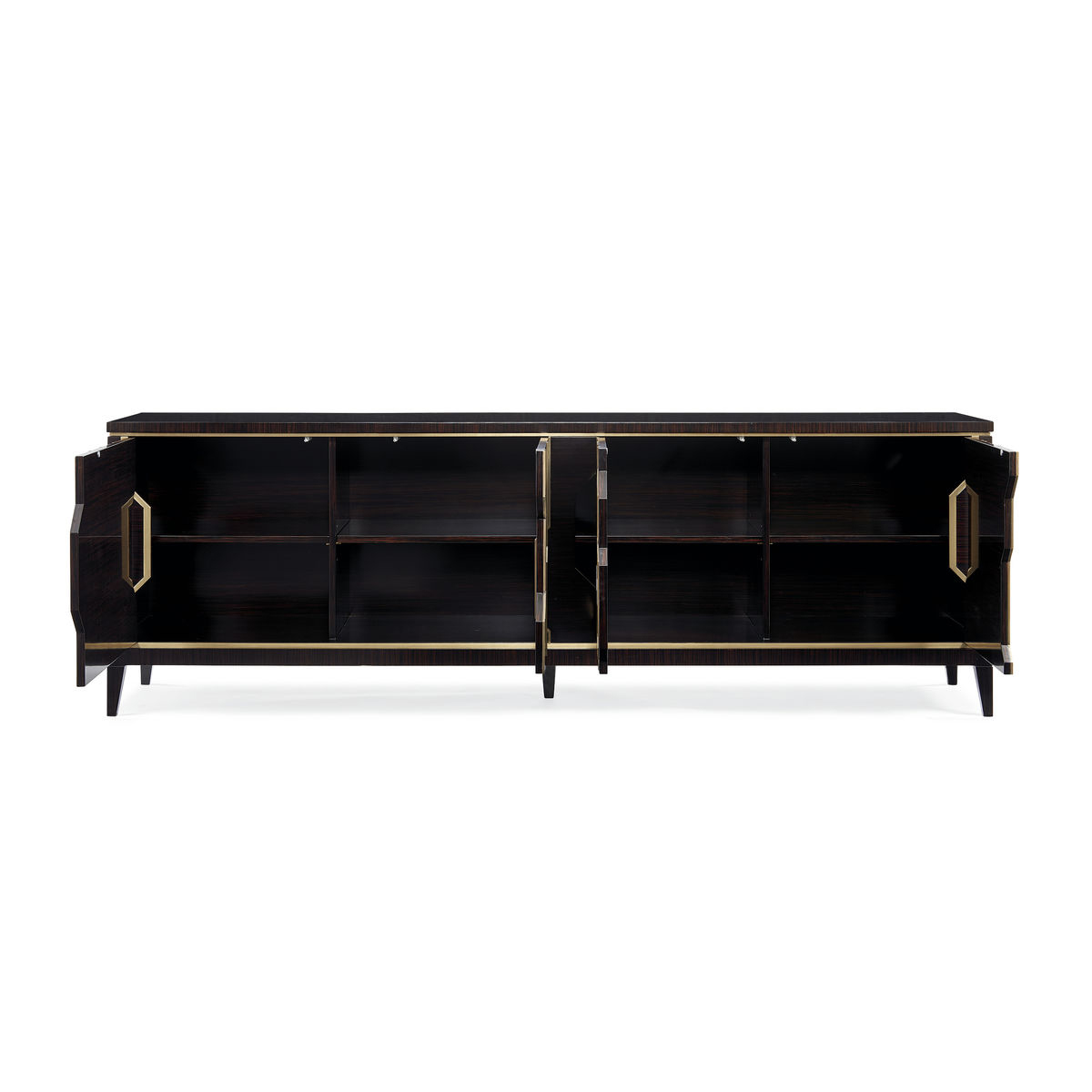 Созданный в виде истинной скульптуры, этот мастерски изготовленный комод украшен фасадом, который, по словам дизайнера Жозе Лейте де Кастро, черпает вдохновение из изящной горизонтальной линии городского небоскреба. Подбирая исключительные материалы, такие как модное черное дерево макассар и изысканная французская латунь, мастера тщательно вырезают и аранжируют их в замысловатой композиции на четырех встроенных дверях. Сами двери оформлены в рельефном стиле, наподобие загадочных пазлов, и оснащены высококачественной европейской фурнитурой для мягкого и плавного открывания. Проведите легкое прикосновение к одной из дверей комода Skyline Credenza, и вам откроется искусство, скрытое в его изящной глубине.