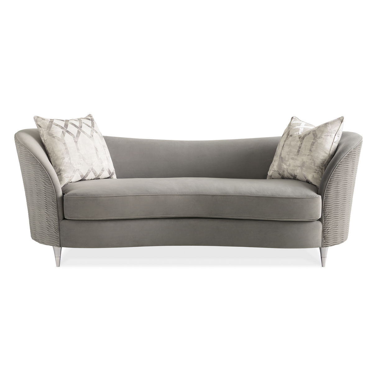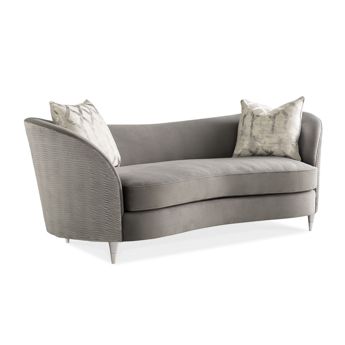Диван Farrah классической почковидной формы придаст мягкий силуэт вашей гостиной комнате. Мягко изогнутое сиденье и комфортно закруглённая спинка оформлены плиссированным бархатом, который окутывает каркас, создавая эффект пульсации. Искусно выполненные металлические акценты и круглые конические ножки с полированными ободками добавляют элегантности. Диван отлично сочетается с овальным коктейльным столиком Farrah и круглыми журнальными столиками из этой же коллекции.