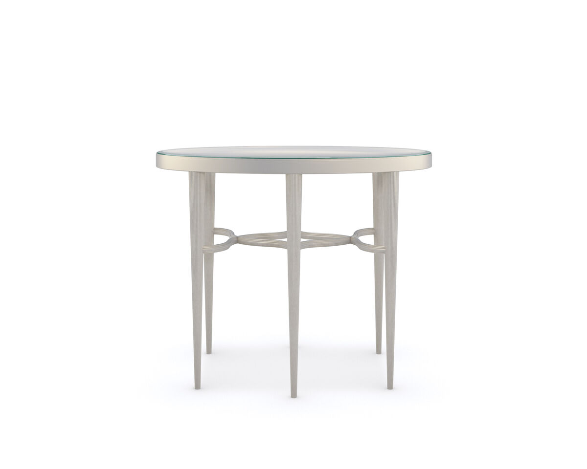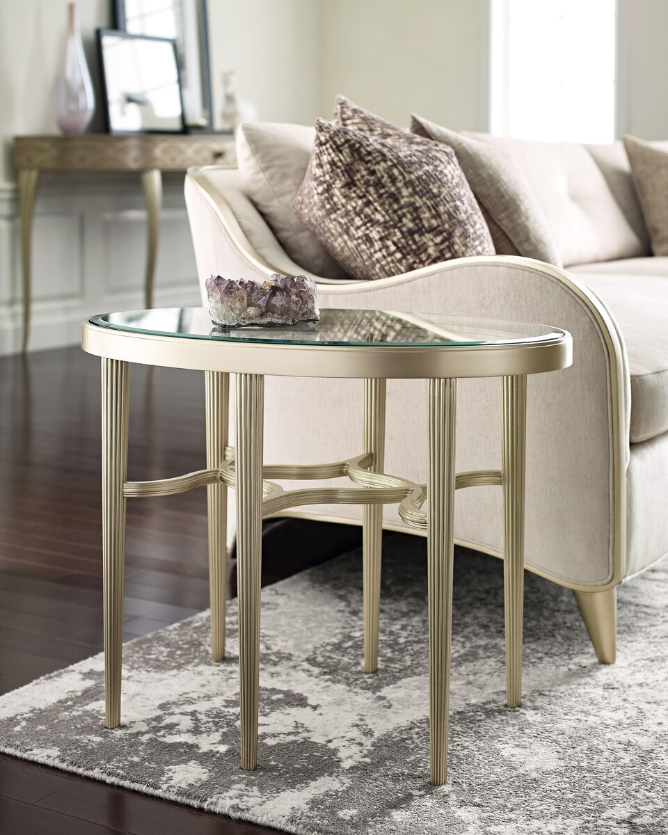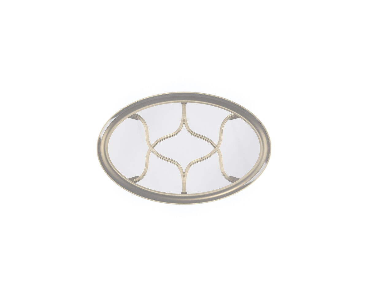 Элегантный и утончённый, овальный боковой столик Oval привнесет нотку гламура рядом с диванами и креслами. Его деревянное обрамление, окрашенное в цвет Soft Radiance, обрамляет стеклянную вставку, демонстрирующую замысловатый переплетающийся узор, который соединяет изящные рифленые ножки.
