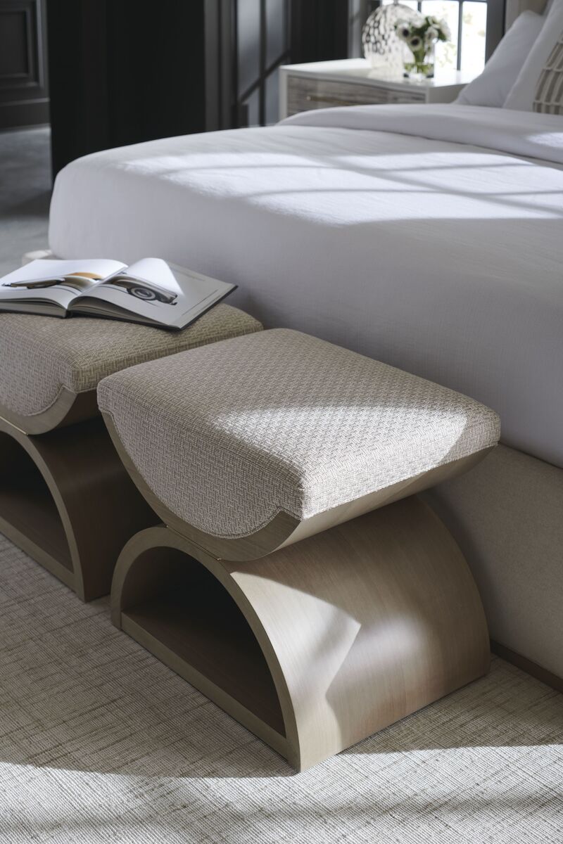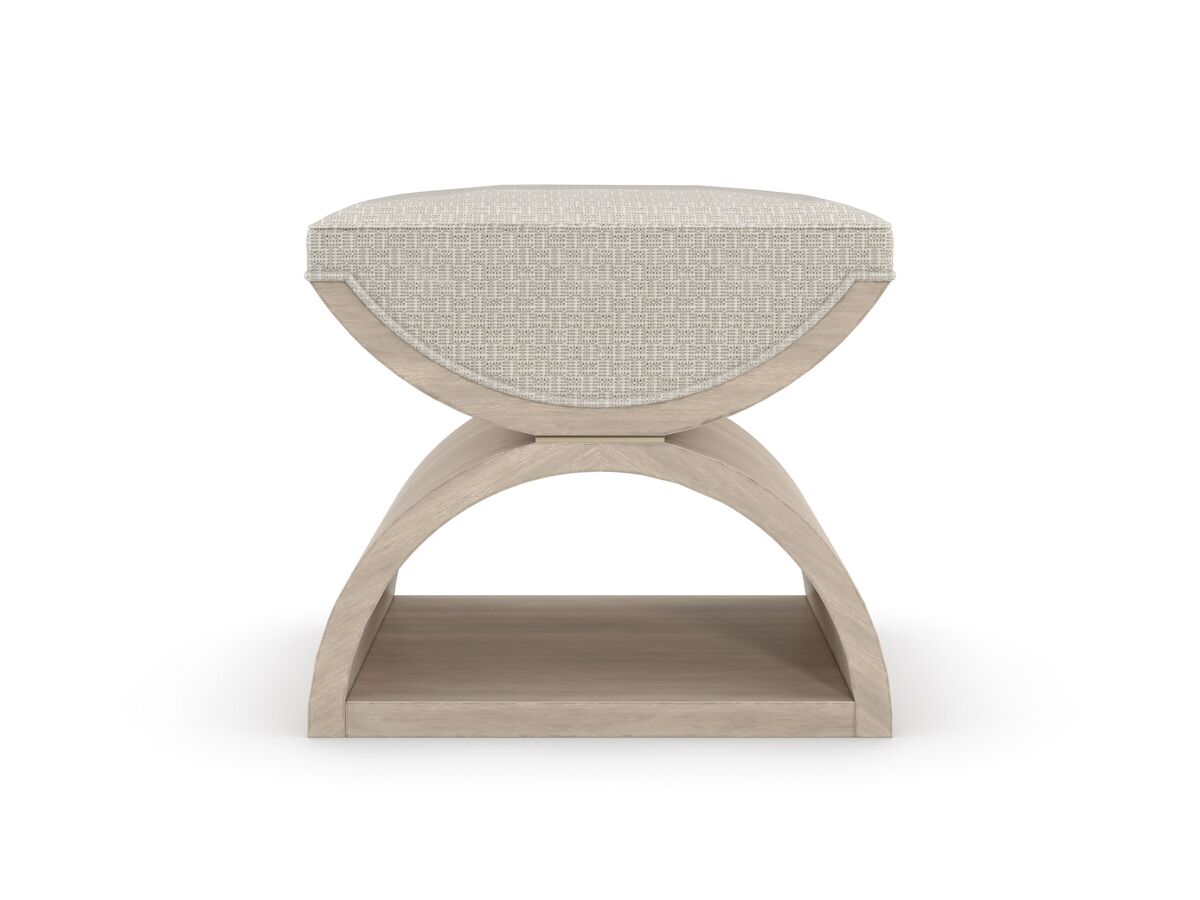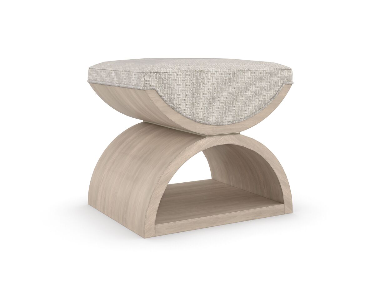 Этот пуф выполнен с изысканным мастерством из геометрически узорчатой ткани с блестящими акцентными нитями. Мягкое сиденье обтянуто мягкой обивкой и поддерживается скульптурным деревянным каркасом, состоящим из двух полумесяцев, разделенных тонкой полосой цвета Majestic Gold. Эти элементы великолепно сочетаются с пастельными оттенками бежевого и мягкого серого, придавая интерьеру изысканность и шарм.