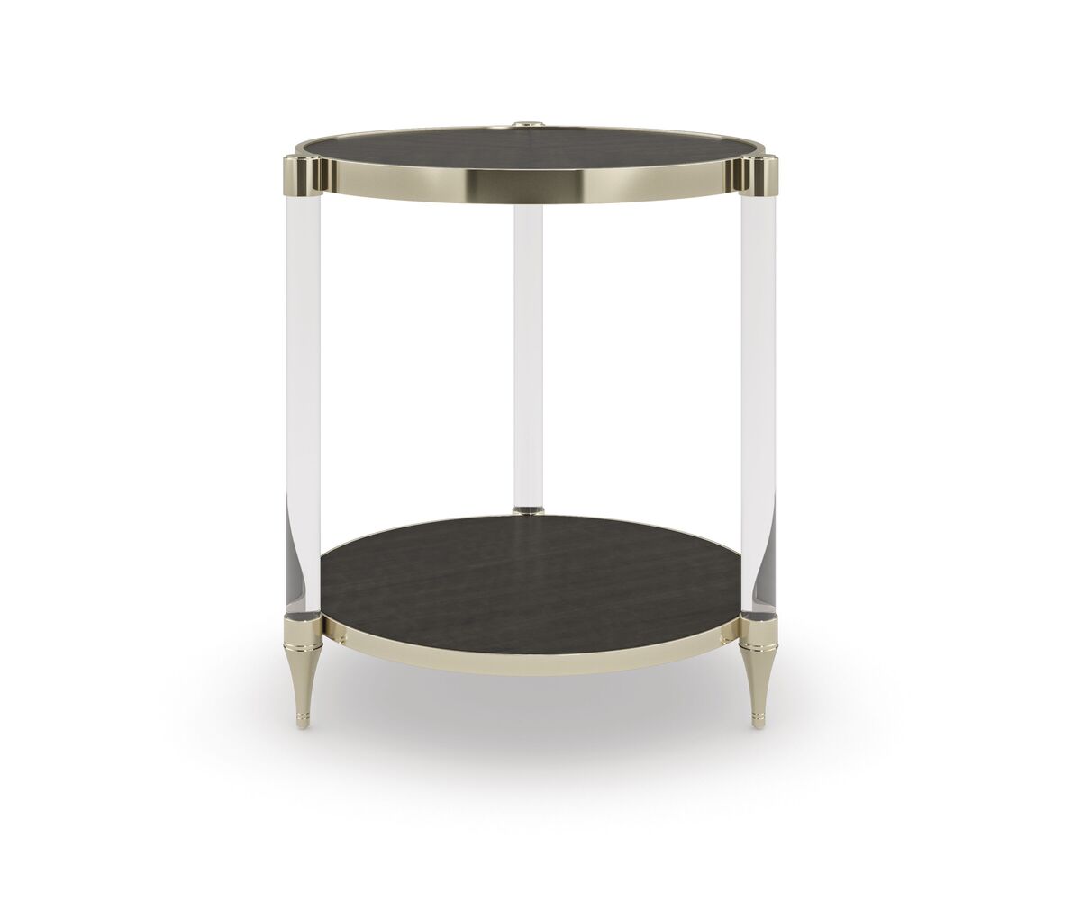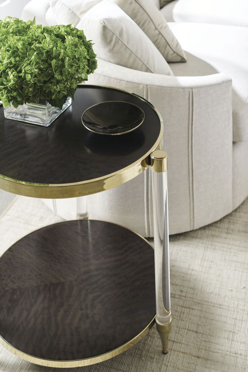 Это изысканное сочетание материалов и отделки выделяет естественное очарование древесины и придает вашему интерьеру драматизма с этим классическим боковым столиком. Верхняя и нижняя полки кажутся, будто парят между акриловыми стойками, изготовленными из шпона Makore и отделанными обугленной корой. Металлическая окантовка в цвете Whisper of Gold добавляет ювелирных деталей и непринужденного гламура вашим жилым интерьерам и интимным местам для бесед.